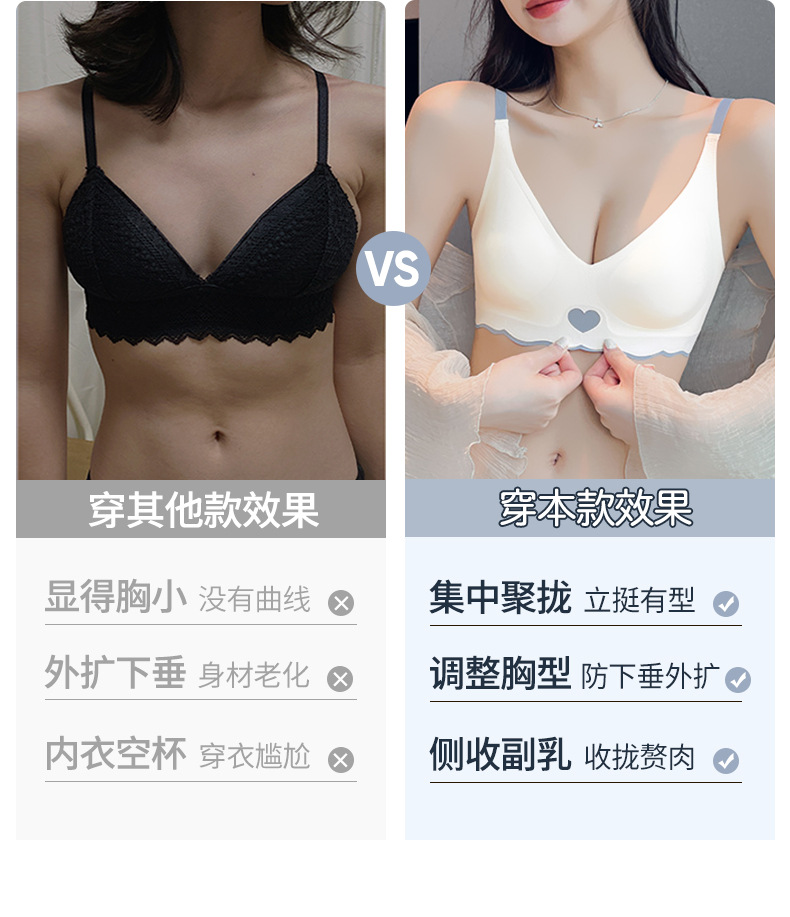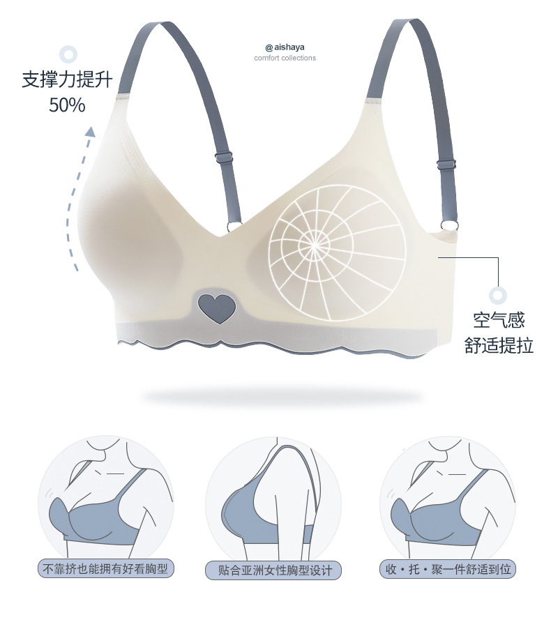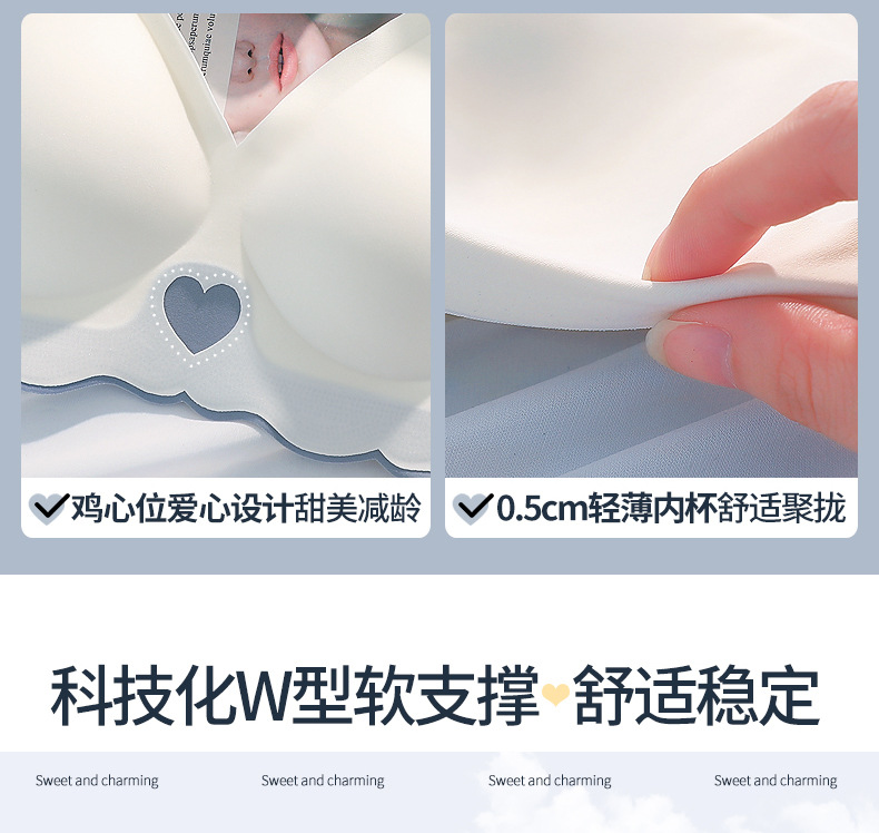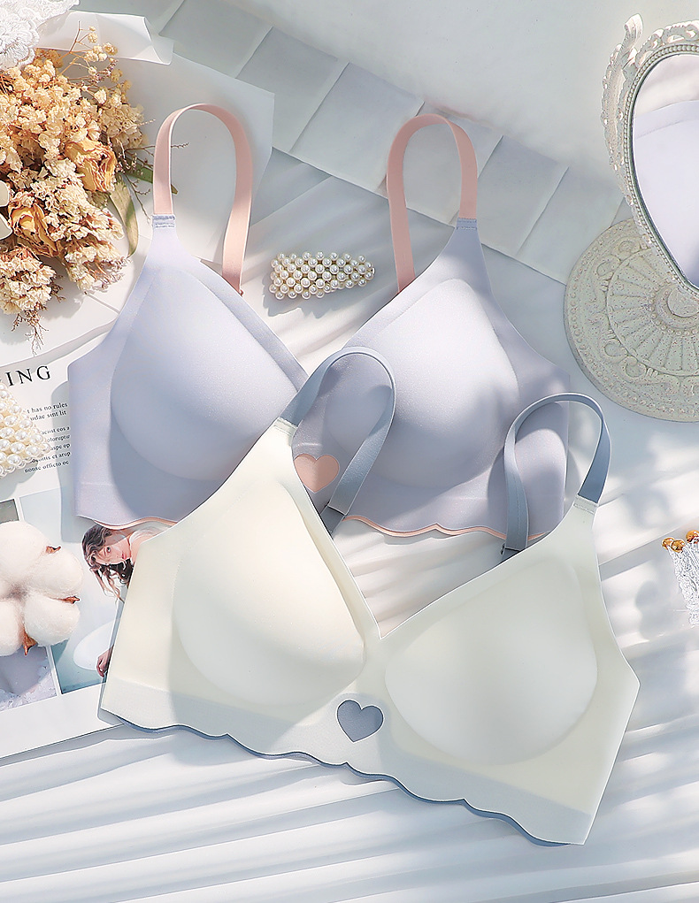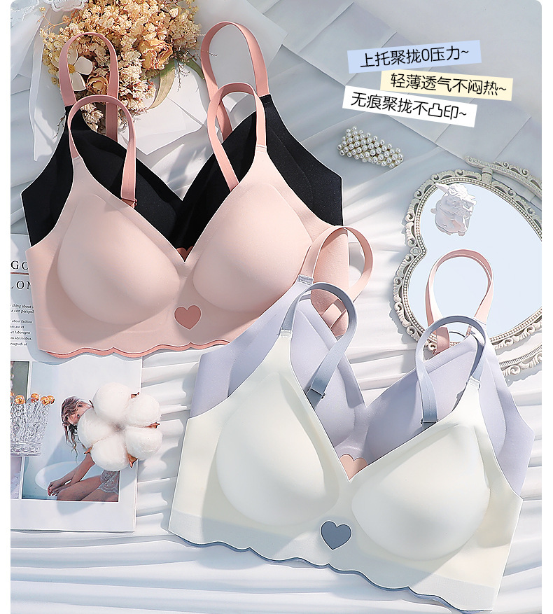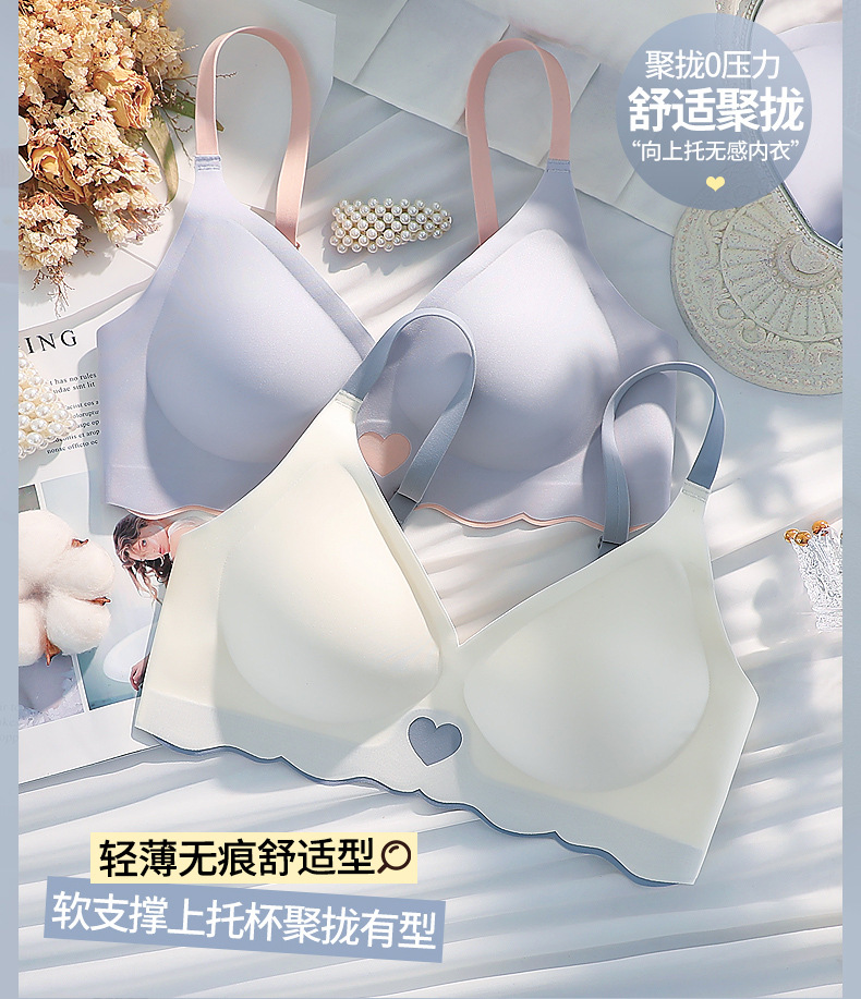 속옷 여성용 작은 가슴 개더링 상부 지지대 처짐 방지 노마크 소프트 지지 노 스틸 링 paramary 유방 화려한 얇은 브래지어