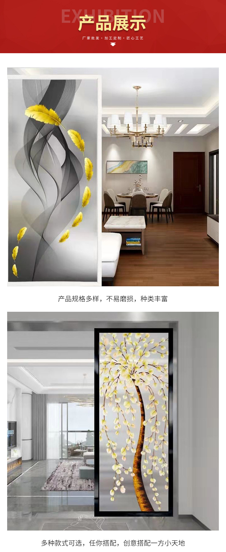 스테인레스 스틸 스크린 파티션 간단한 현대 거실 침실 유리 홈 입구 욕실 차단 입구