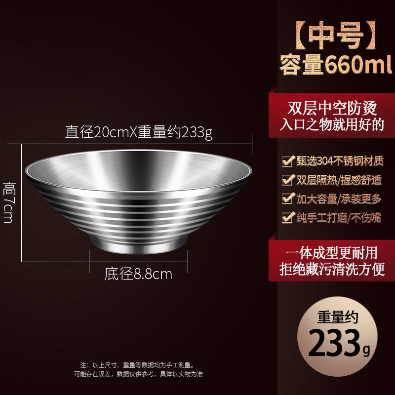 304 스테인레스 스틸 라면 그릇 가정용 주방 더블 레이어 화상 방지 수프 그릇 국수 그릇 상업용 달팽이 분말 그릇 버킷 그릇스토어 가기