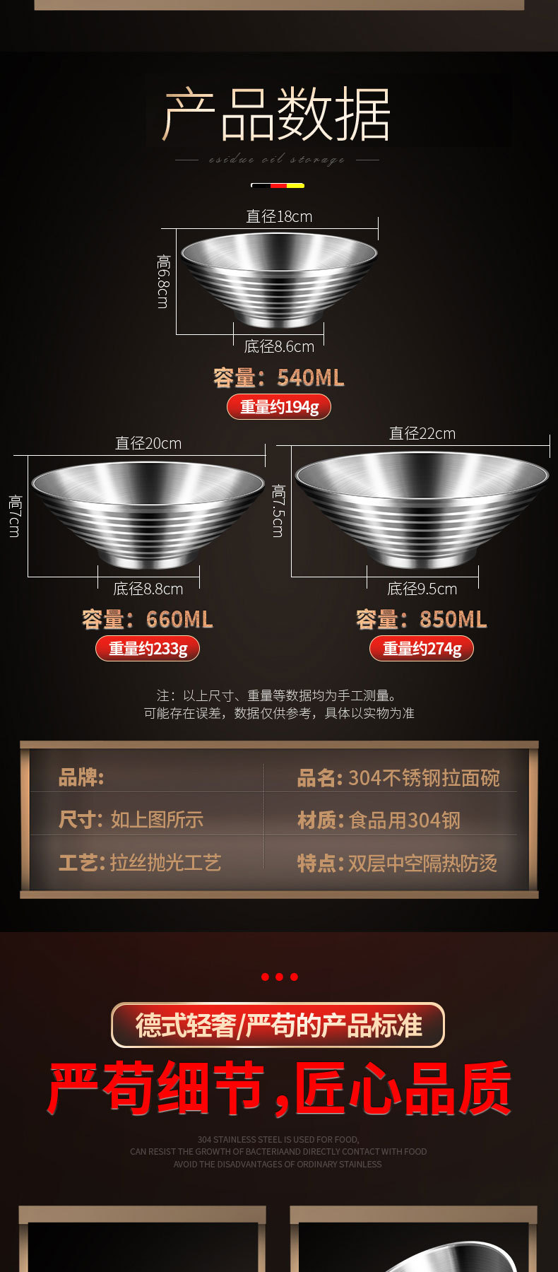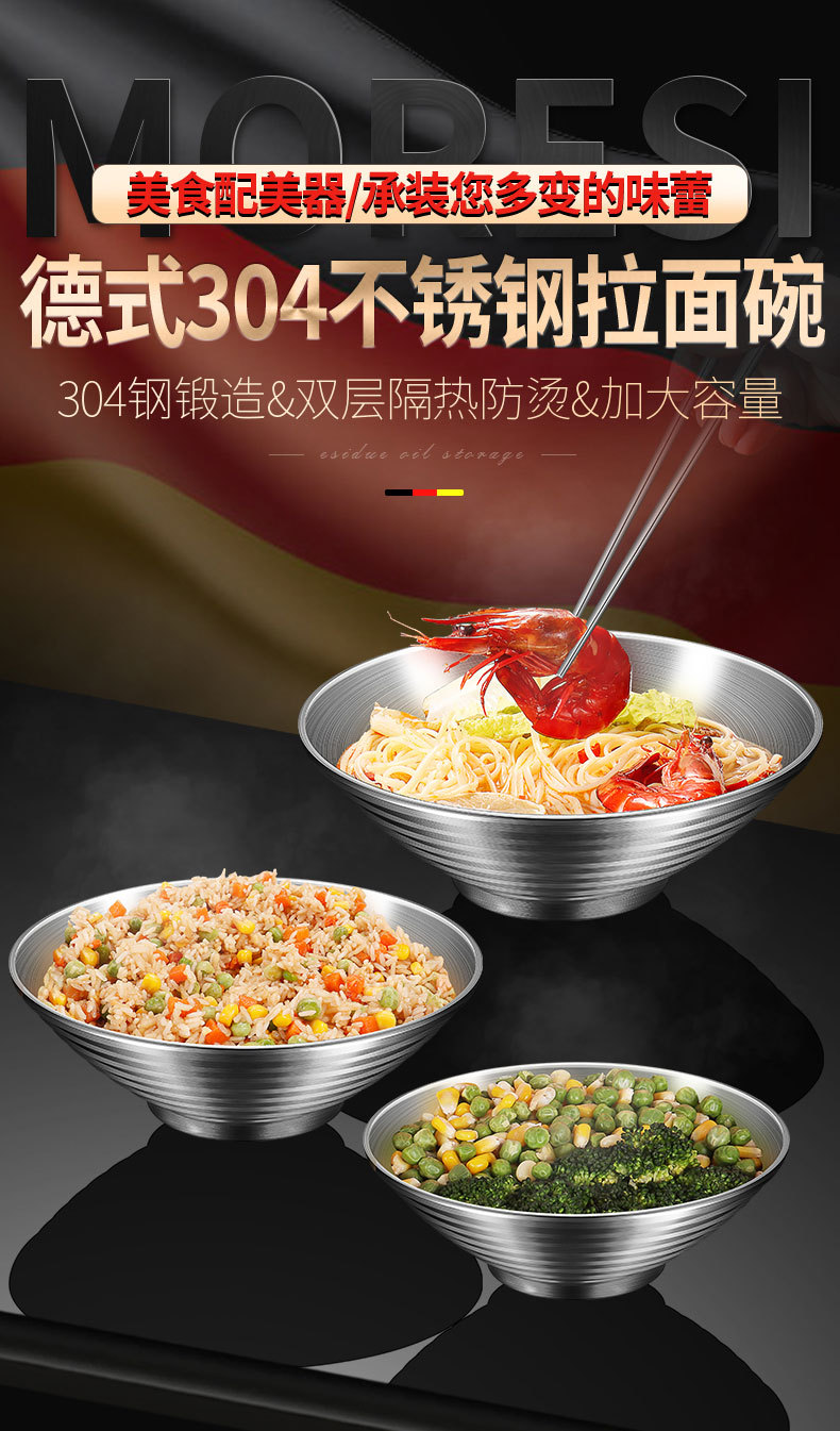 304 스테인레스 스틸 라면 그릇 가정용 주방 더블 레이어 화상 방지 수프 그릇 국수 그릇 상업용 달팽이 분말 그릇 버킷 그릇