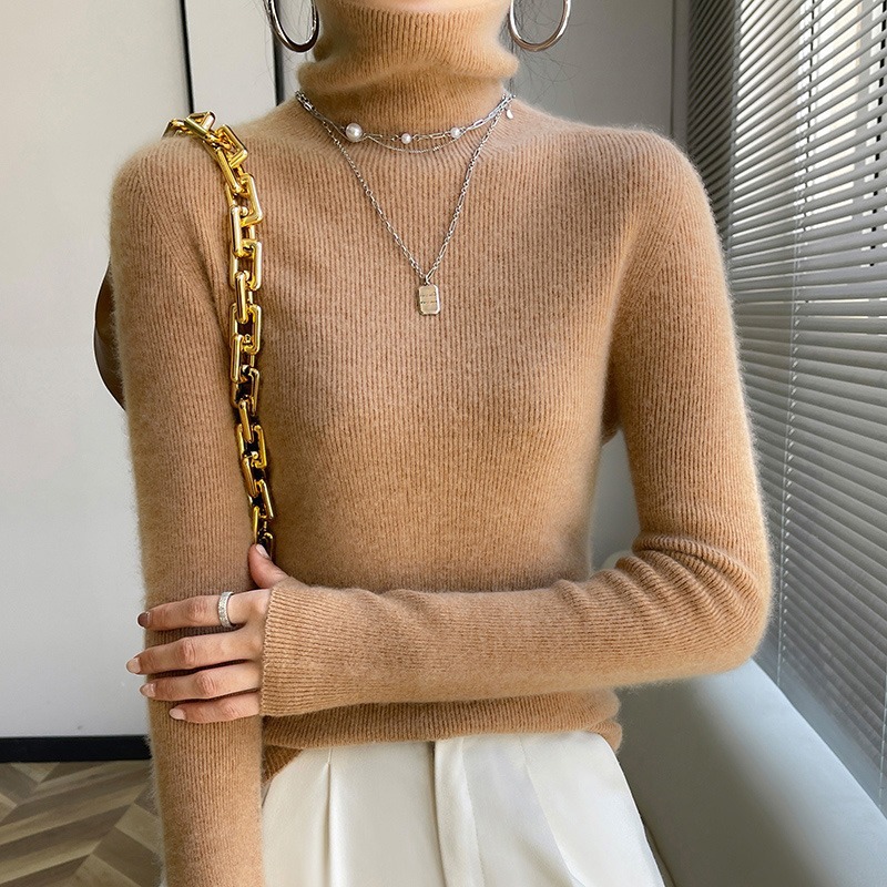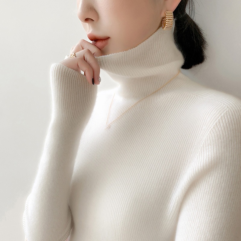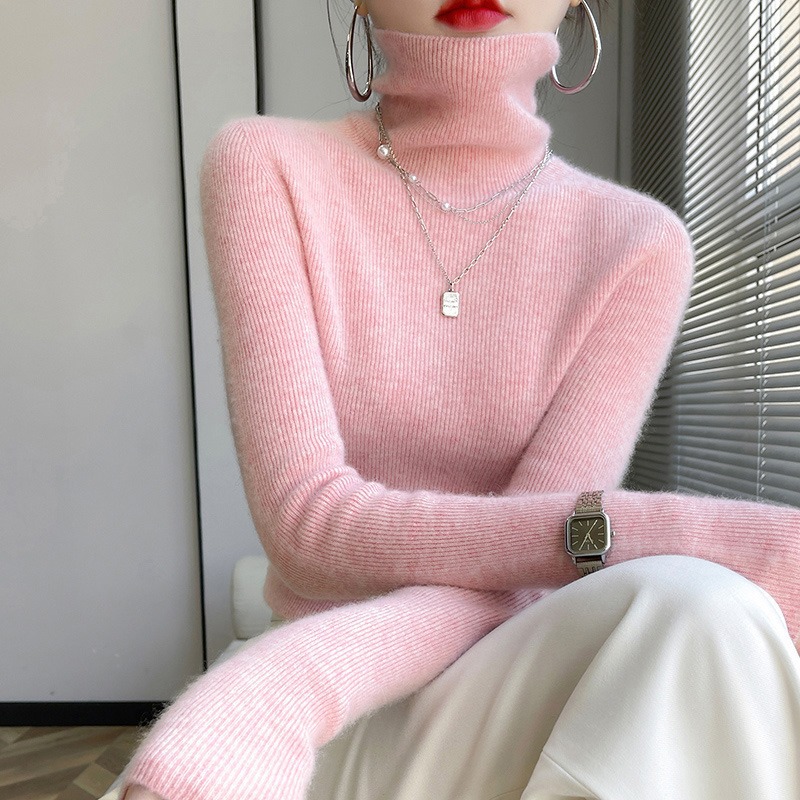 2023 가을과 겨울 우아한 슬림핏 하이넥 웜 백킹 셔츠 풀오버 슬리밍 스웨터 내부 타이트 백킹 스웨터