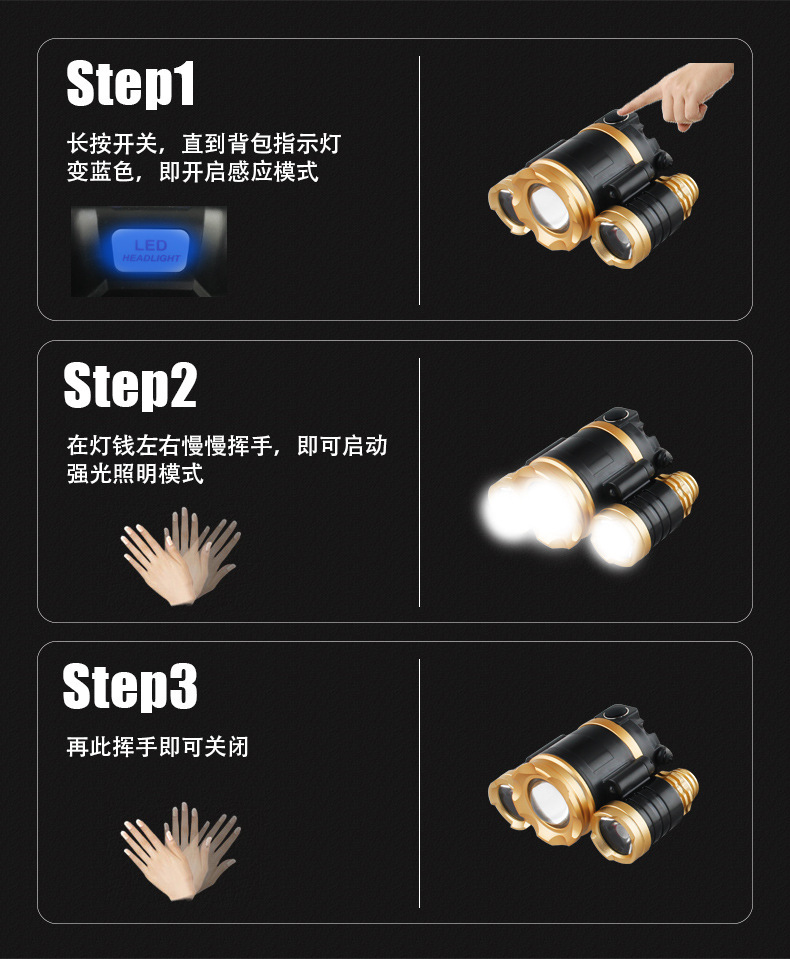 • 알루미늄 합금 인덕션 [포커싱 + 3 개의 헤드라이트 + 직접 충전 + 박스]