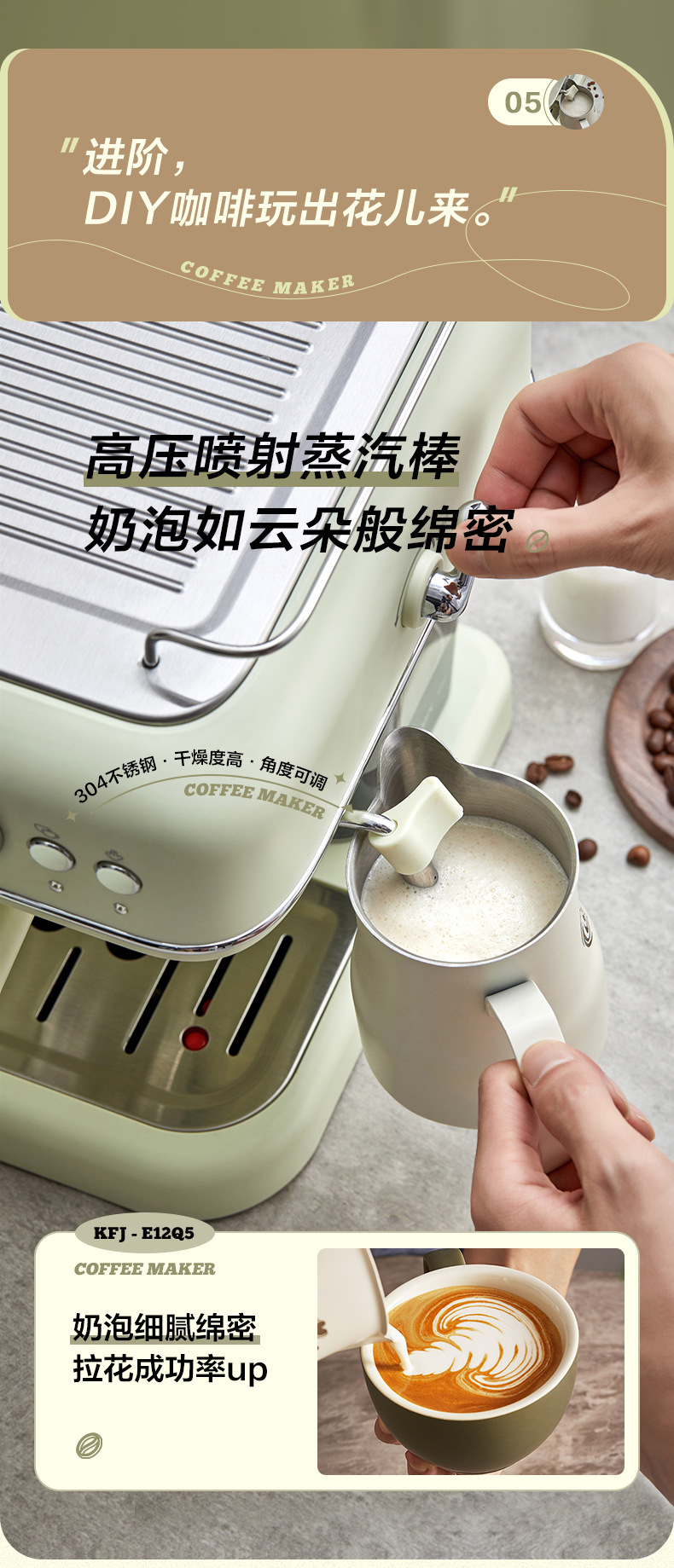 小熊KFJ-E12Q意式泵压式家用咖啡机 高压打奶泡胶囊全自动咖啡机