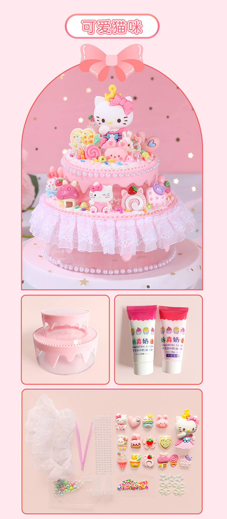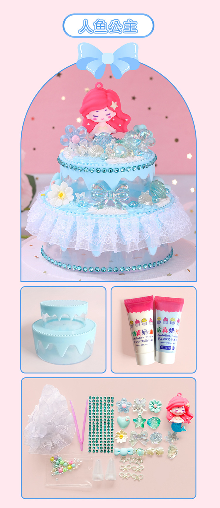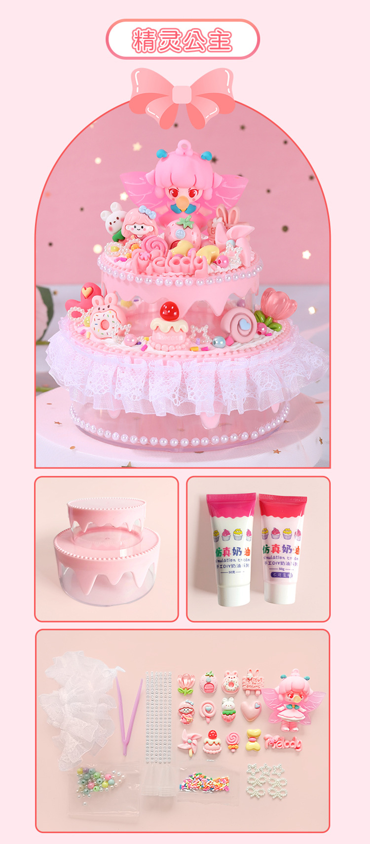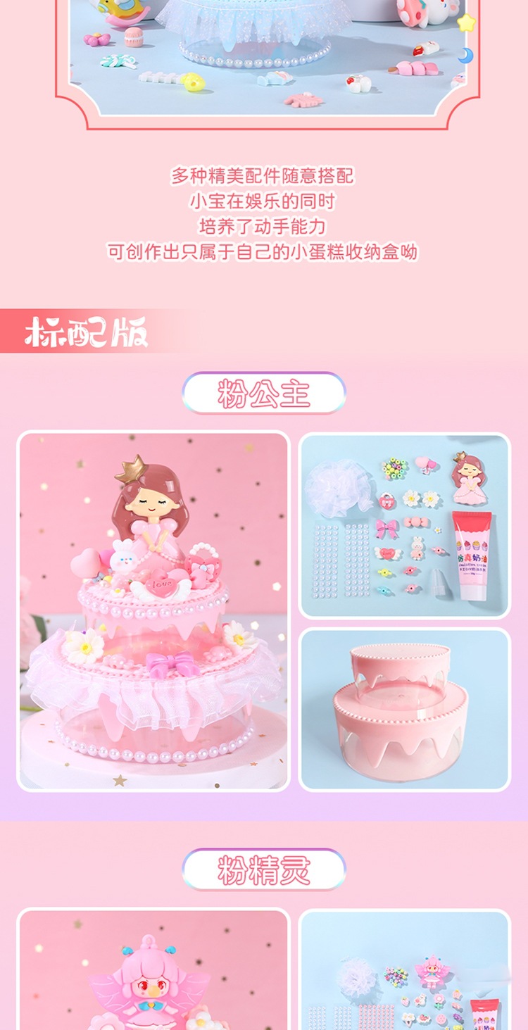 모에 Zhiyuan 어린이 DIY 크림 케이크 보석 상자 작은 케이크 수제 재료 가방 소녀 장난감