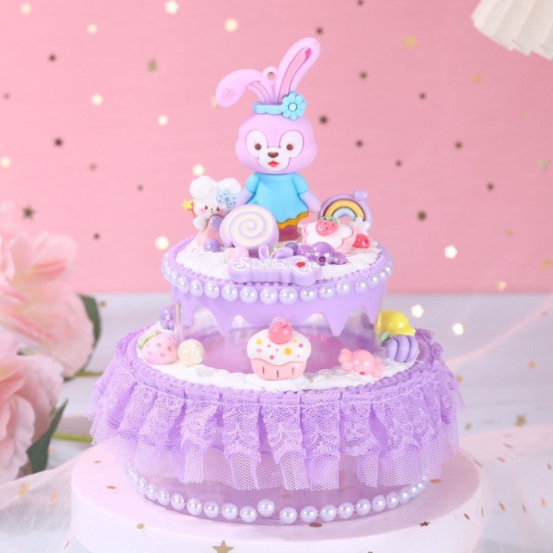 • 크림 작은 케이크 보라색 토끼