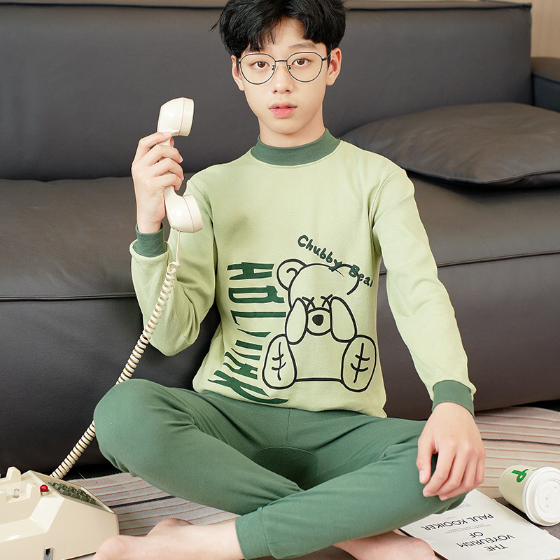 어린이 가을 의류 및 바지 순면 세트 가을 겨울 반 높이 칼라 중간 칼라 중간 칼라 속옷 중간 및 대형 어린이와 학생 소녀와 소년스토어 가기