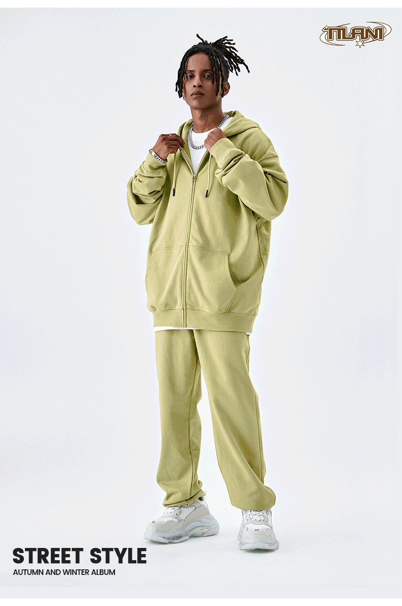 TILANI 남성 유럽과 미국의 패션 브랜드 하이 스트리트 유명 미국 400G 테리 코튼 지퍼 재킷 남성 및 여성 솔리드 컬러 슈트스토어 가기