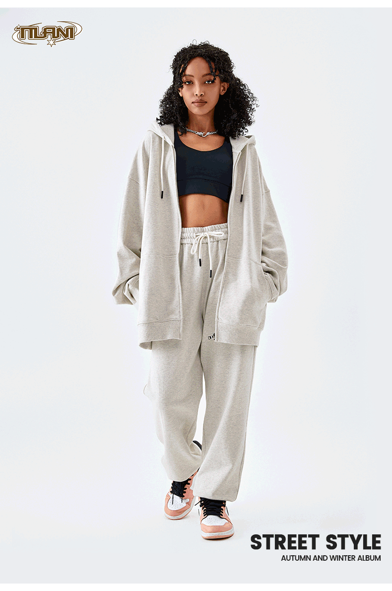 TILANI 남성 유럽과 미국의 패션 브랜드 하이 스트리트 유명 미국 400G 테리 코튼 지퍼 재킷 남성 및 여성 솔리드 컬러 슈트