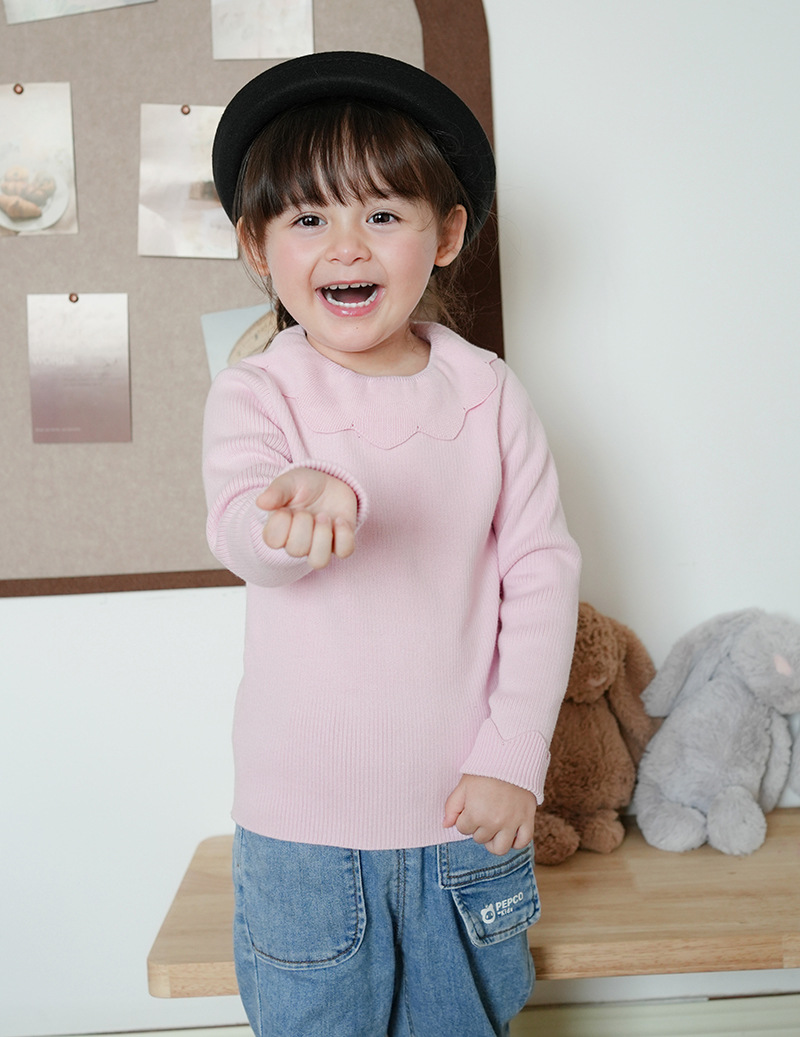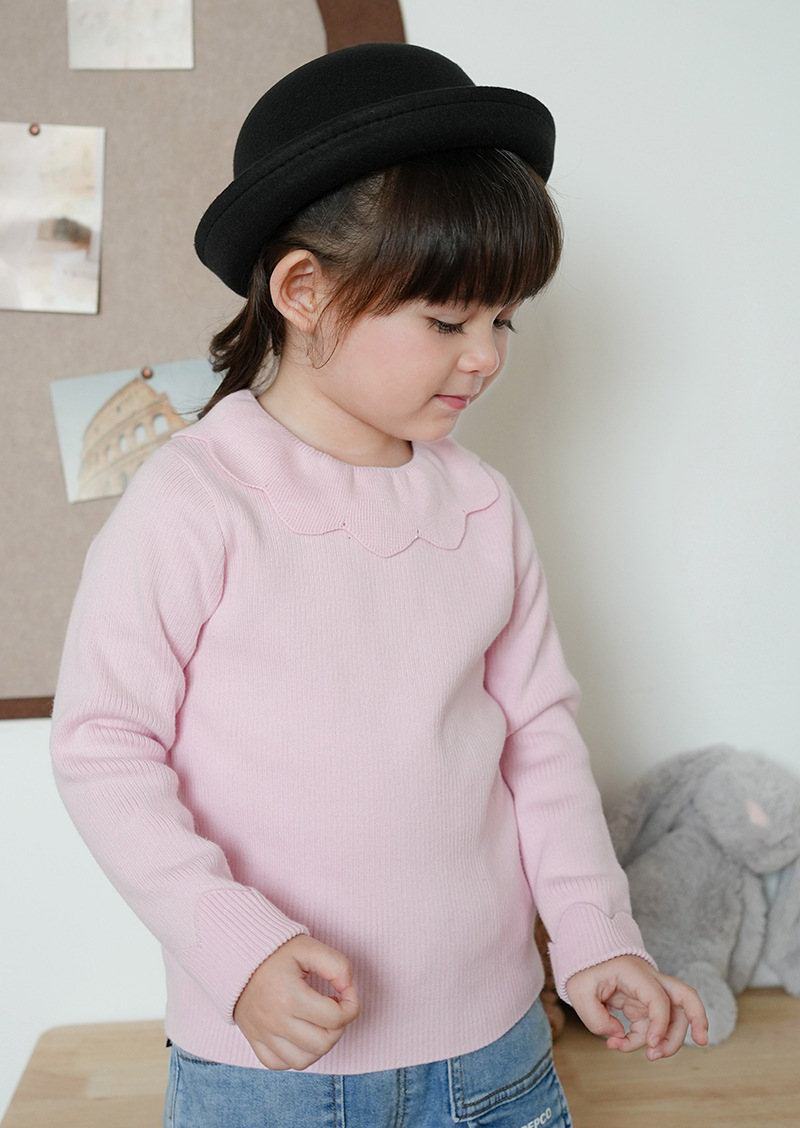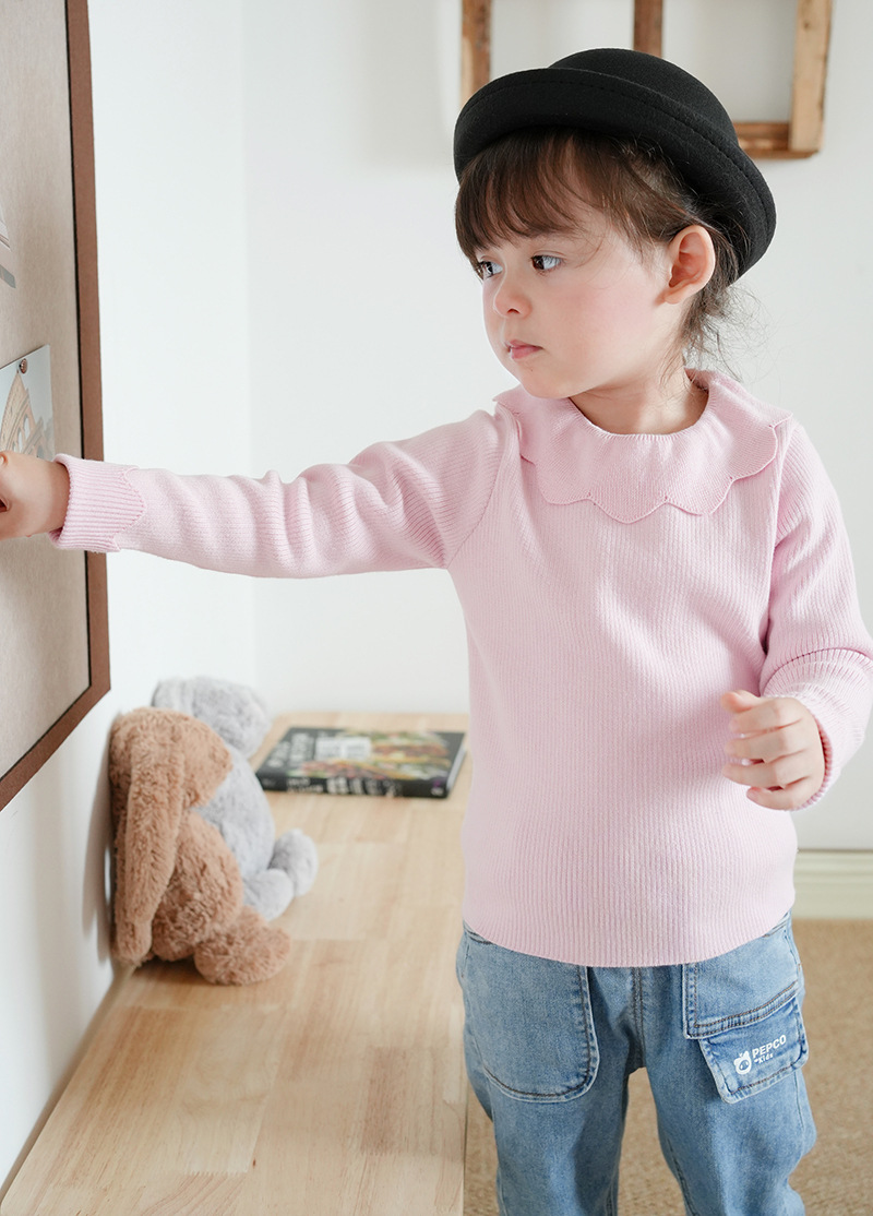 2023 새로운 아동복 라운드 넥 여아 스웨터 봄과 가을 옷깃 어린이 니트베이스 셔츠 크로스 보더 스웨터 도매스토어 가기