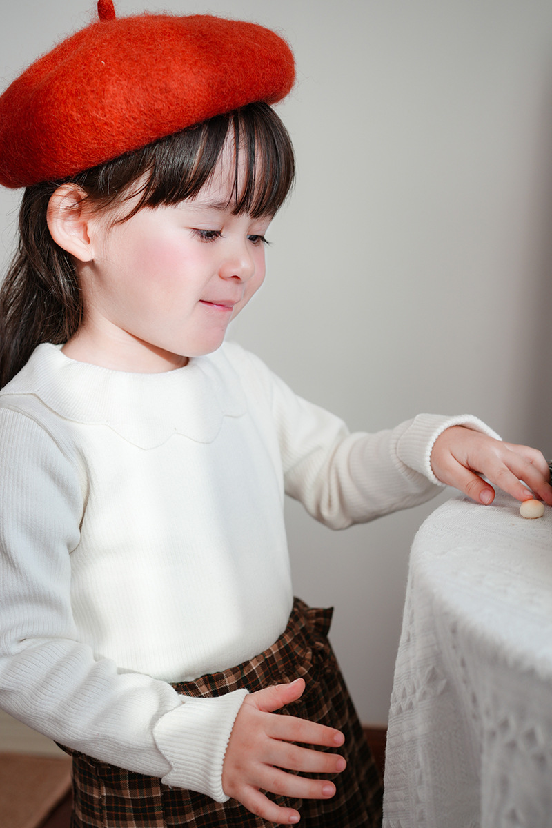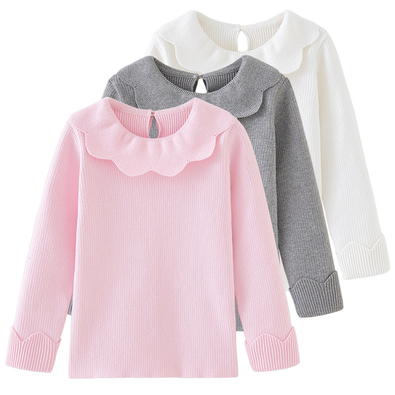 2023 새로운 아동복 라운드 넥 여아 스웨터 봄과 가을 옷깃 어린이 니트베이스 셔츠 크로스 보더 스웨터 도매