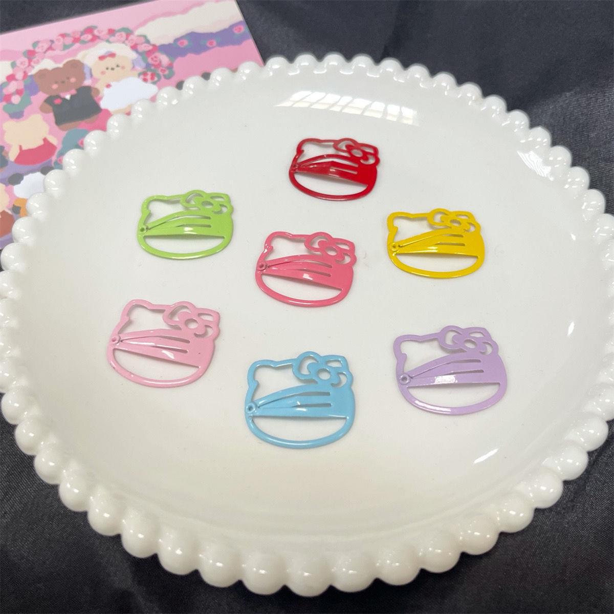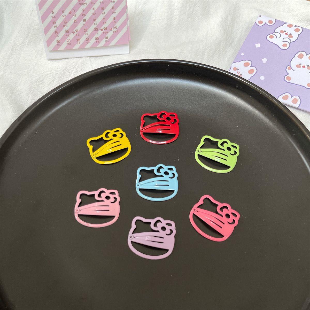 컬러 KT 고양이 BB 클립 ~ 귀여운 달콤한 소녀 하트 머리핀 학생 다목적 실용적인 앞머리 사이드 클립 만화 머리 장식
