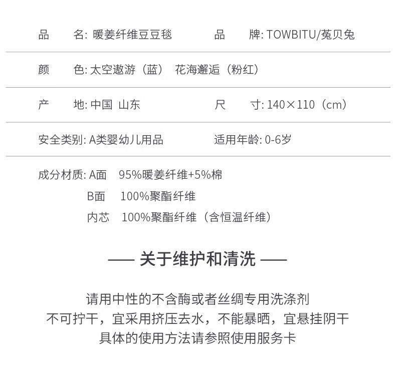 • [따뜻한 생강 섬유 업그레이드] 우주 여행 110*140cm (실온 20-25 ℃)