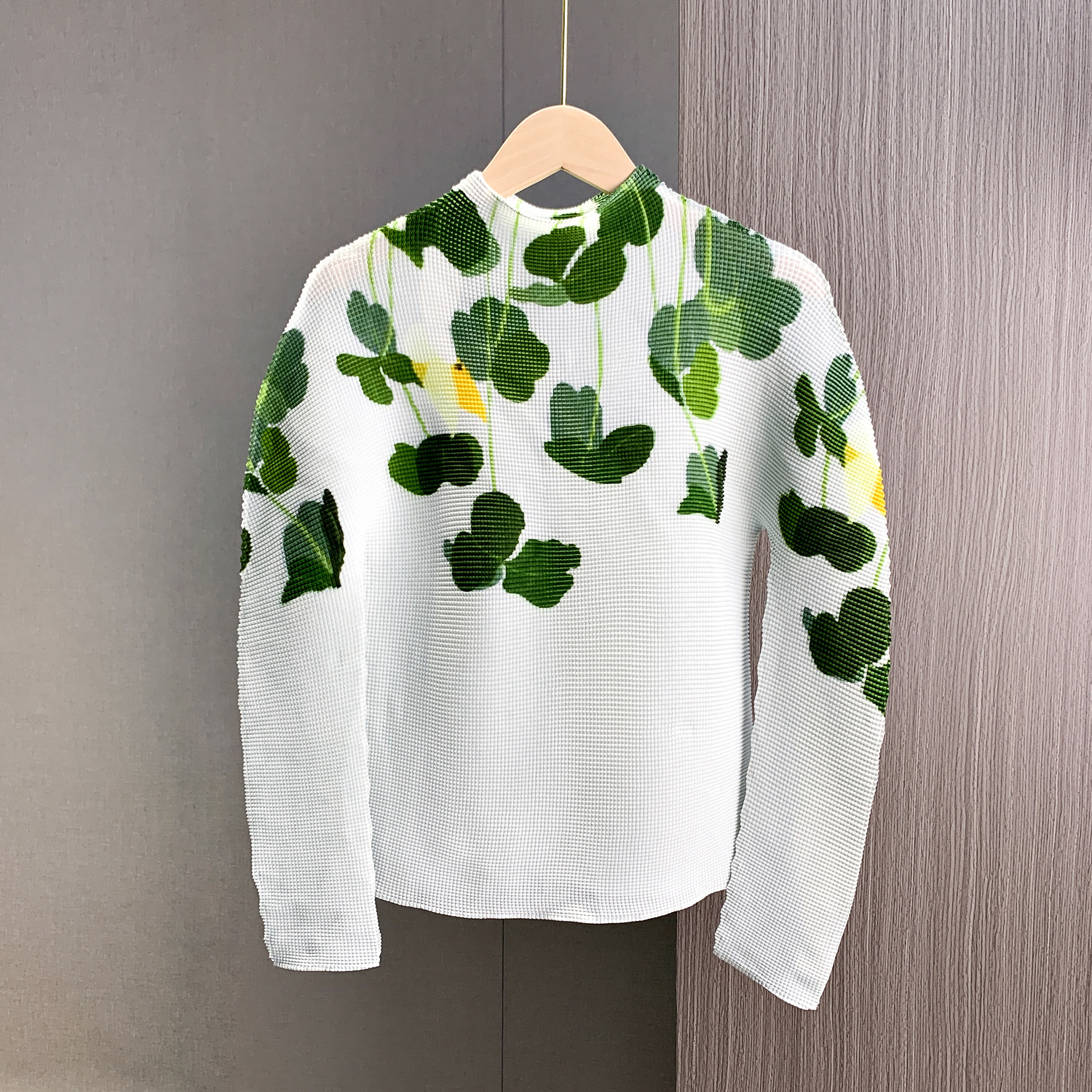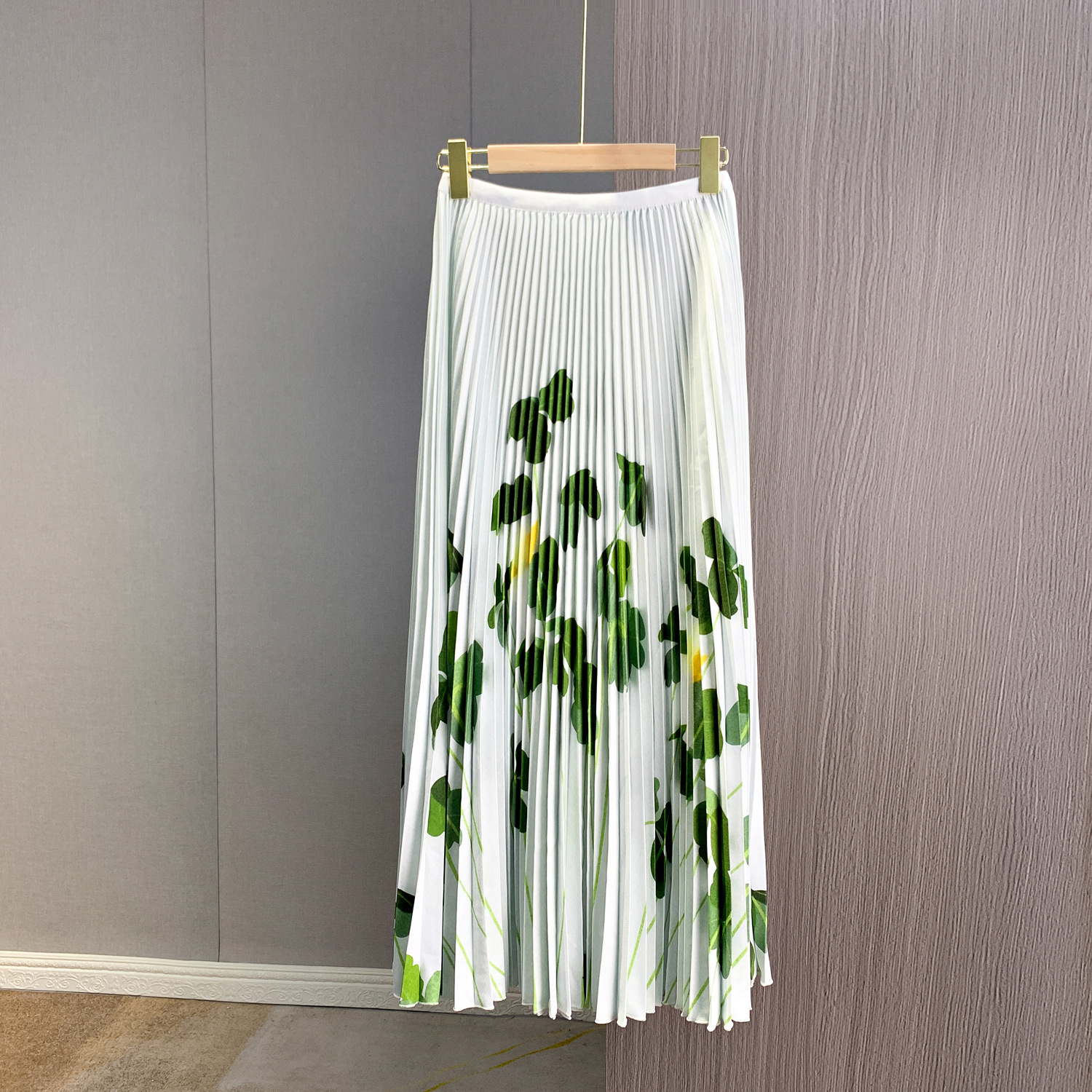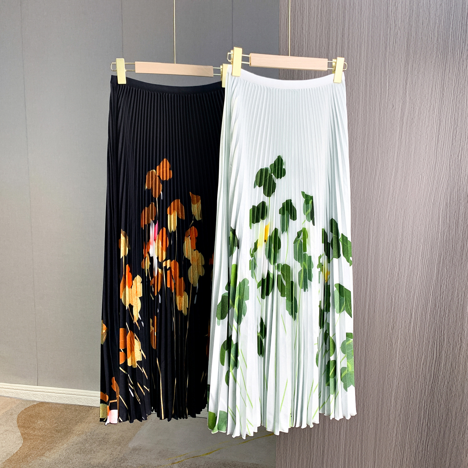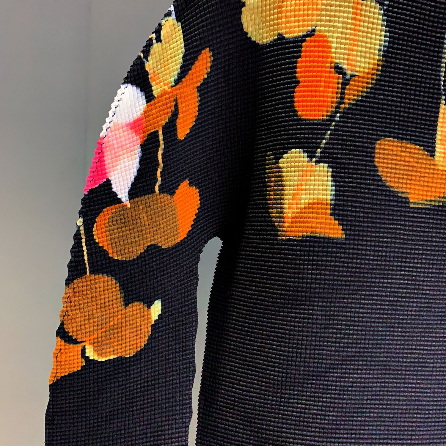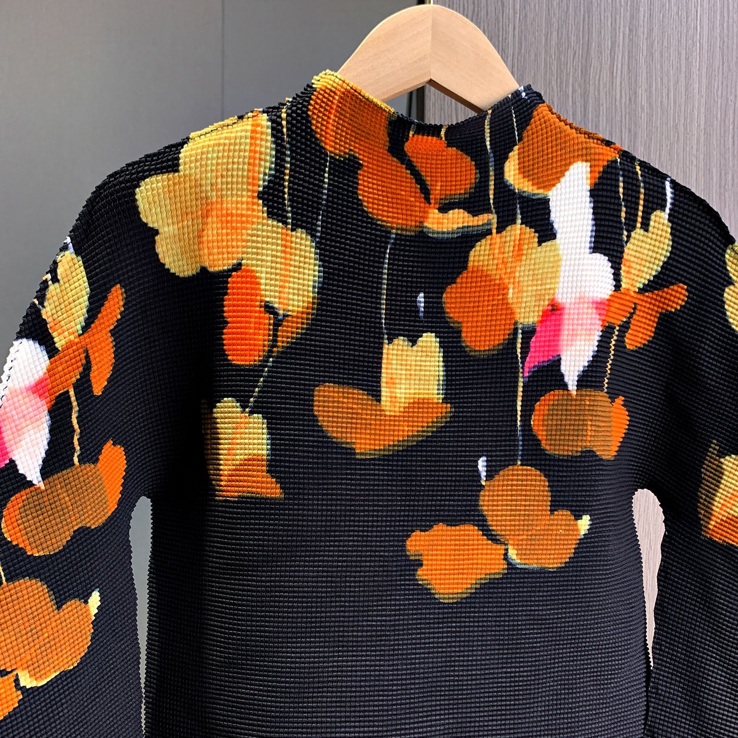 미야케 플리츠 세련된 플로럴 프린트 스커트 세트 가을 새로운 유행 우아한 슬림 핏 스트레치 원피스 여성용스토어 가기