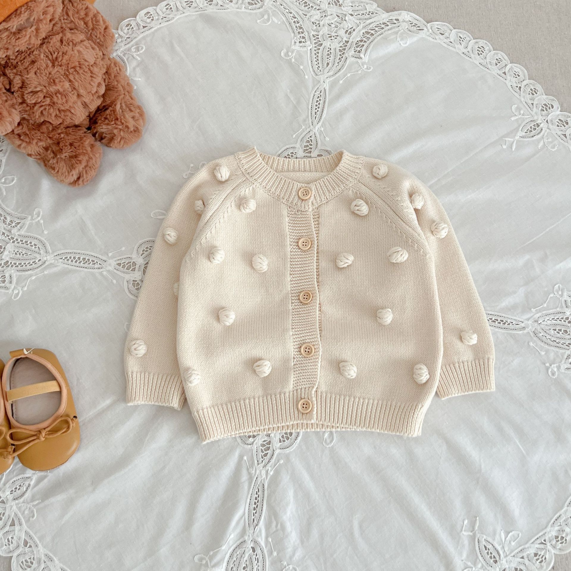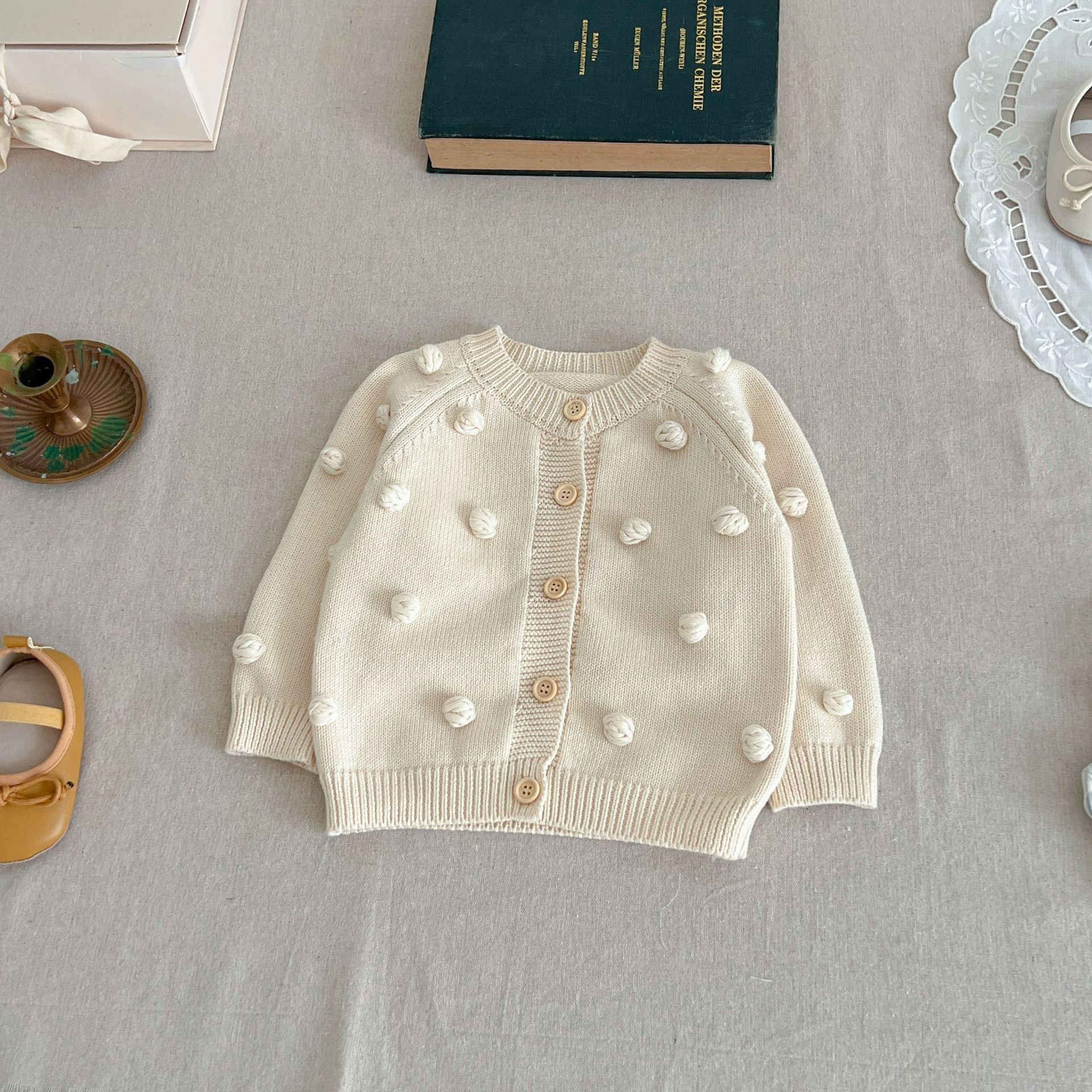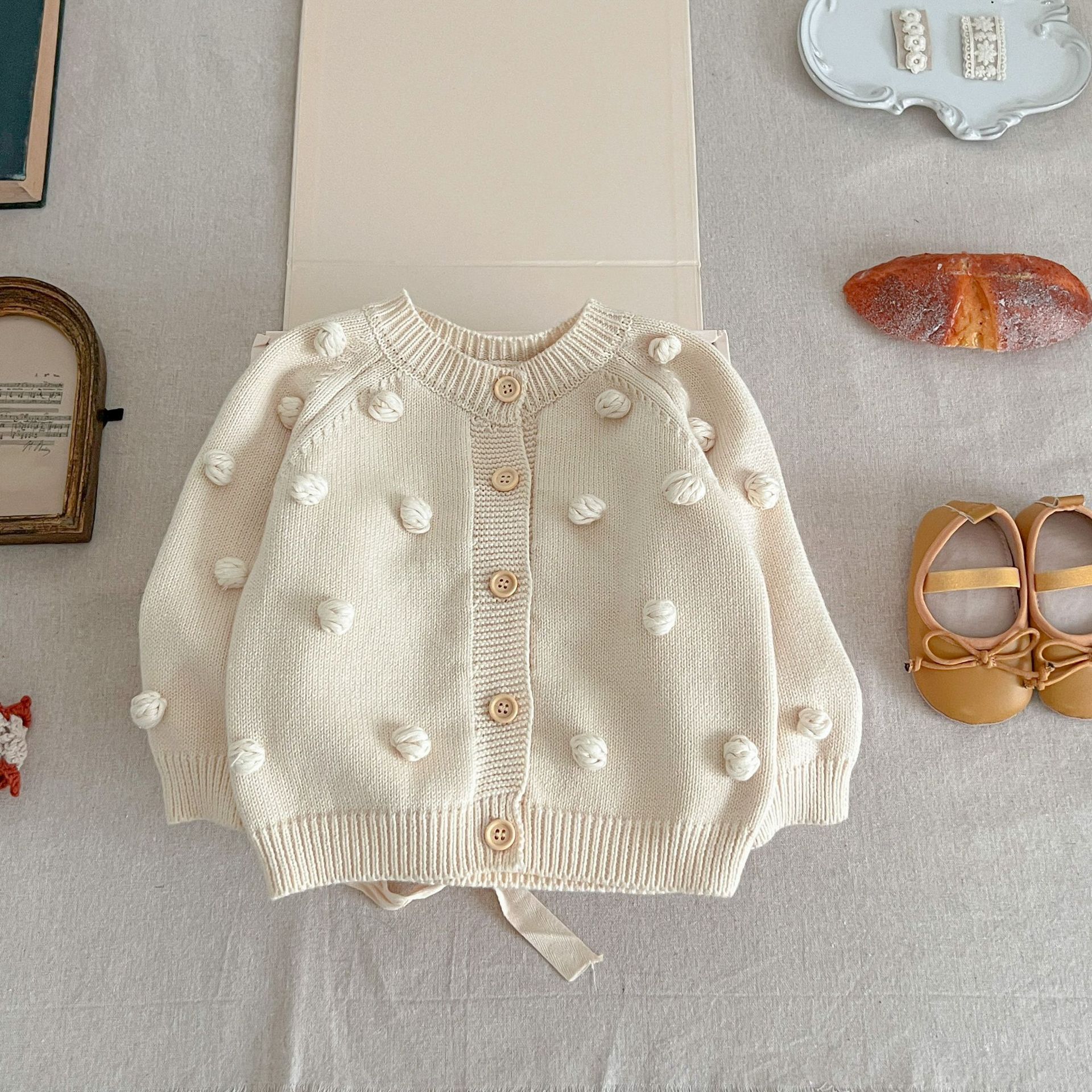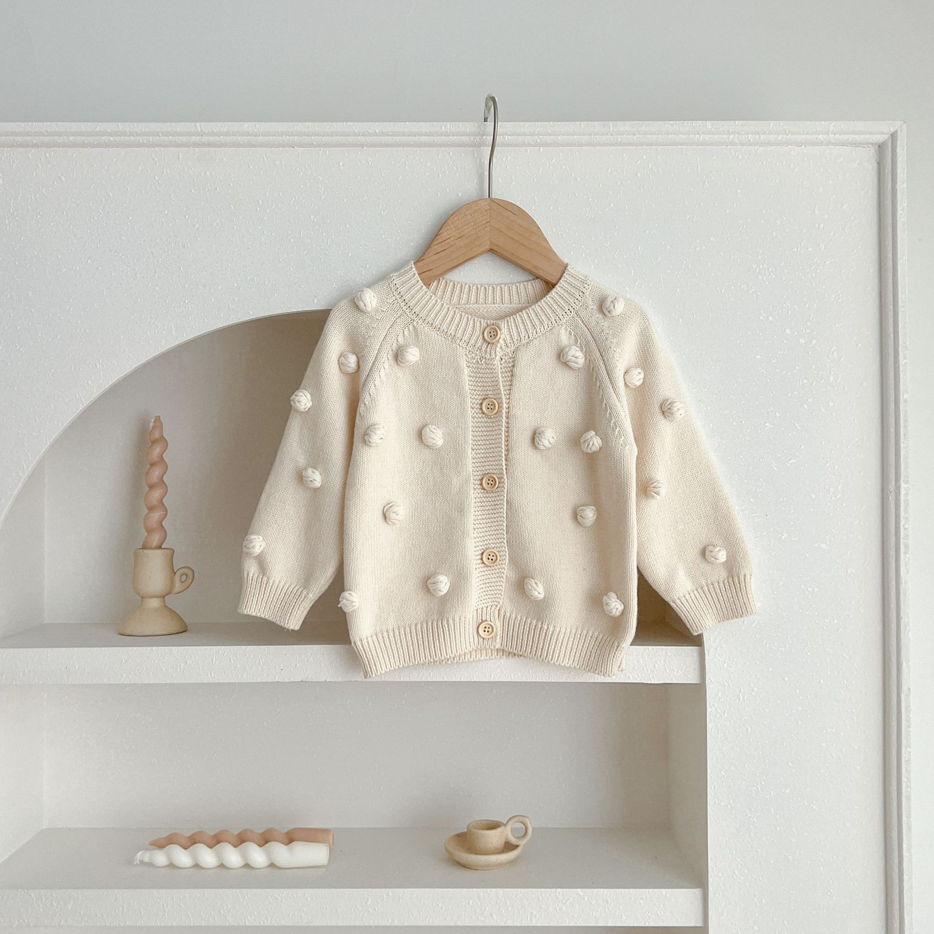 가을 모든 경기 소년과 소녀 아기 어린이 수제 볼 니트 코트 면 긴 소매 신생아 니트 가디건