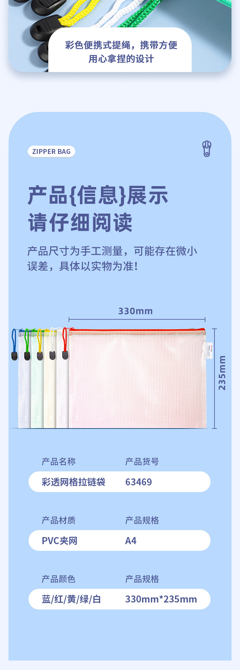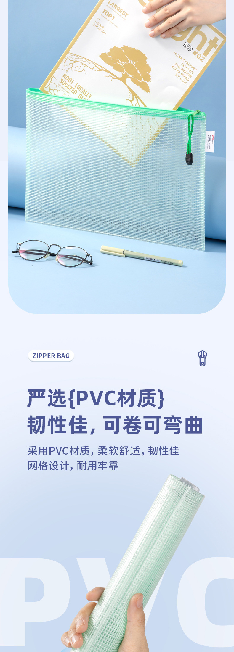 델리 63469/63480 파일 가방 투명 메쉬 지퍼 가방 정보 가방 방수 보관 가방 학생 a4a5