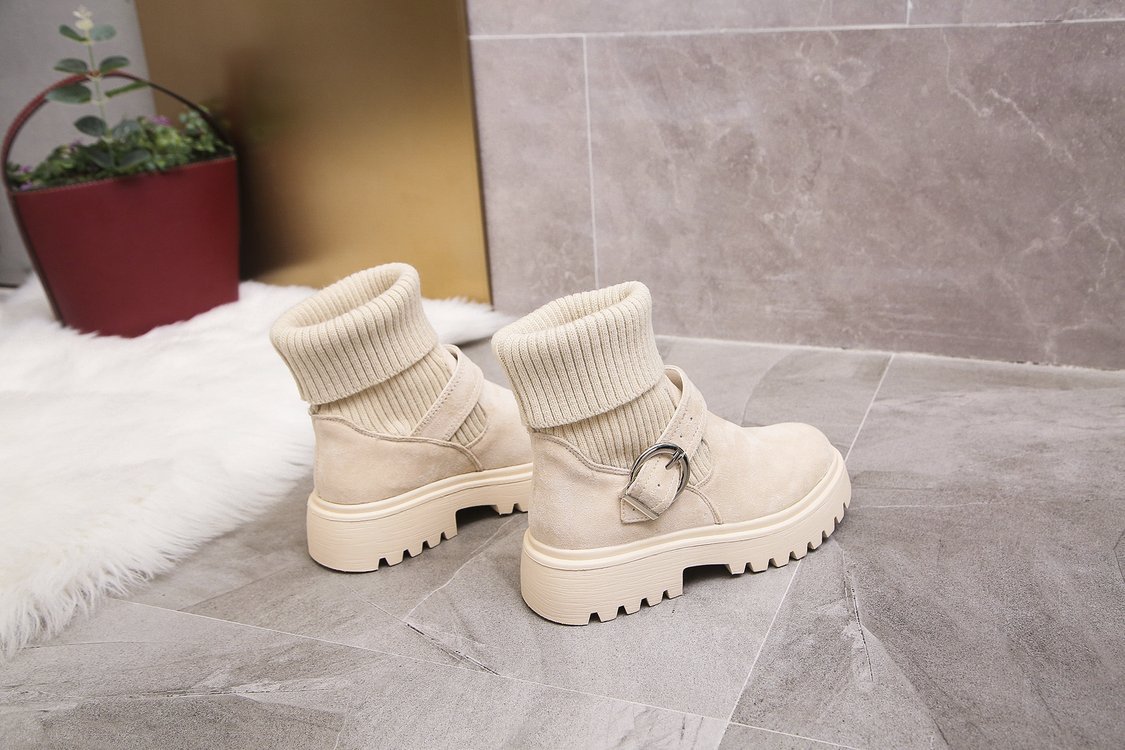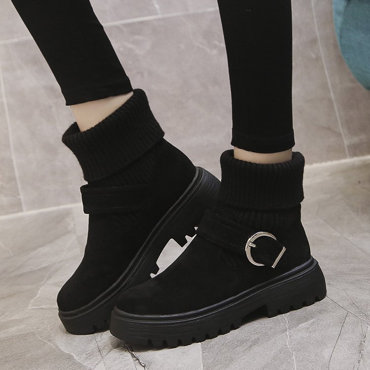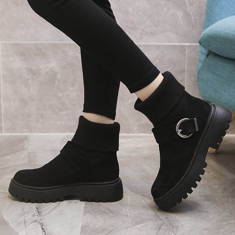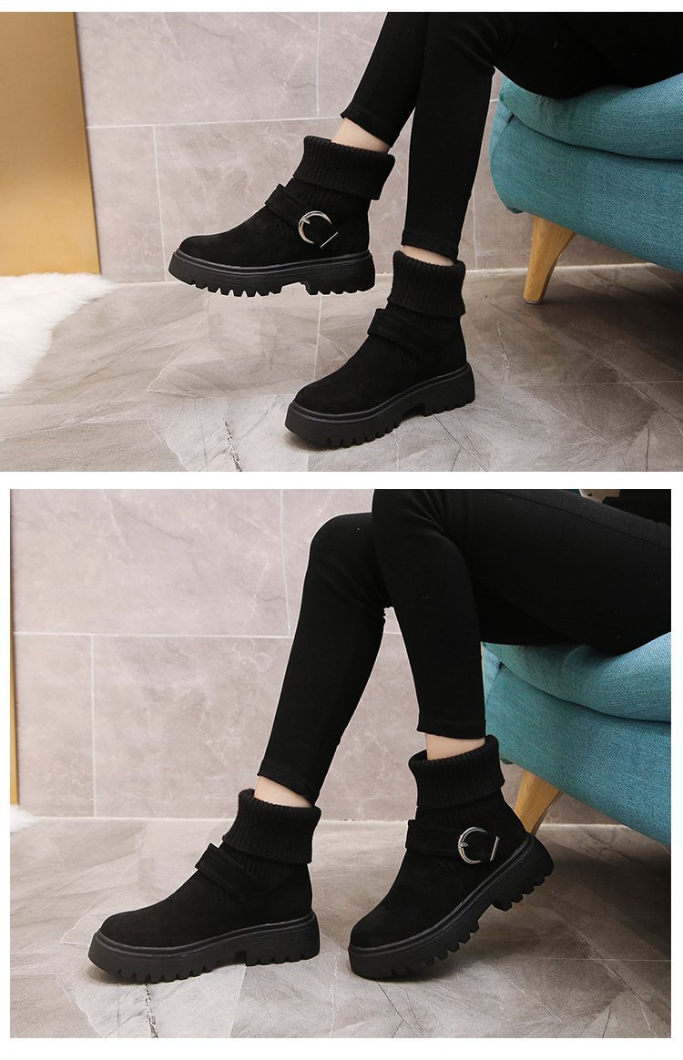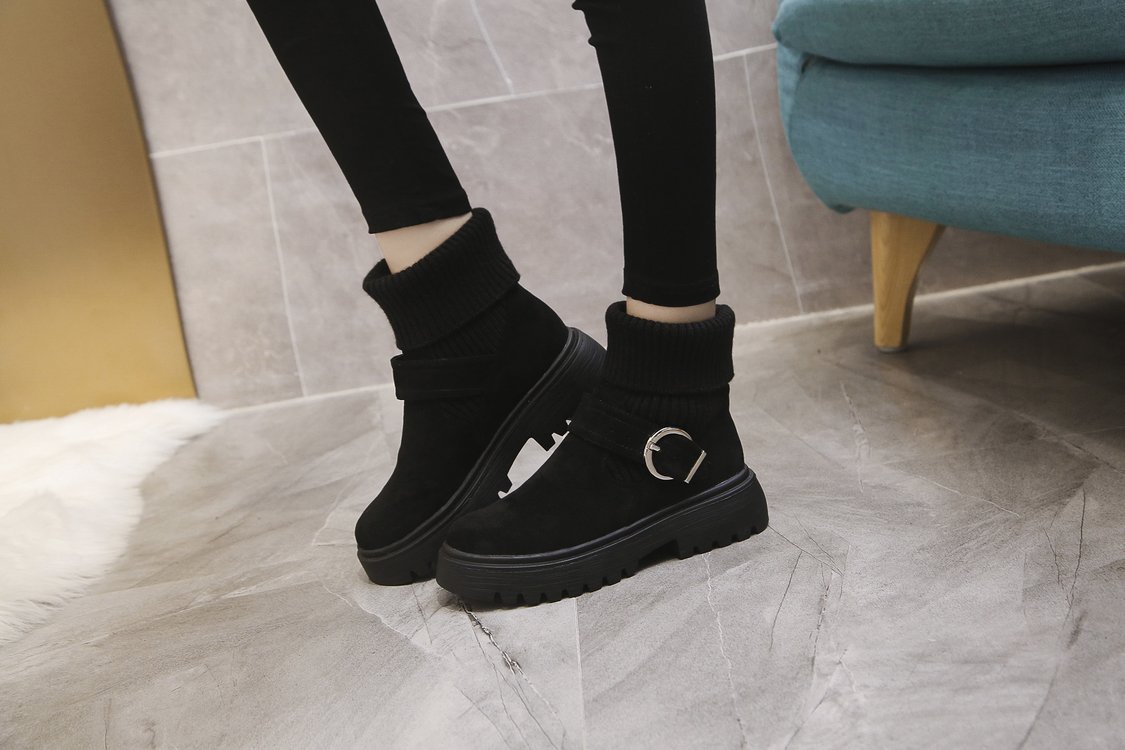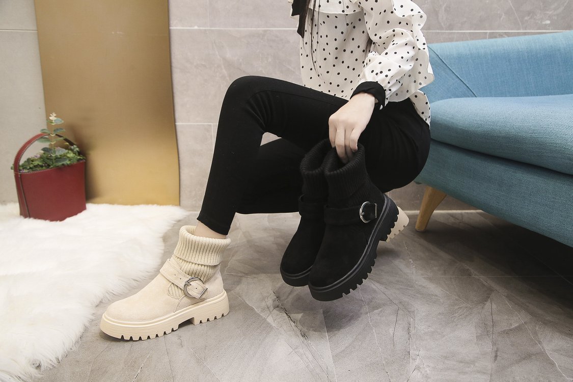 2023 가을과 겨울 새로운 스노우 부츠 두꺼운 바닥 벨트 버클 울 튜브 기모 여성의 짧은 부츠 라운드 양말 부츠 조수스토어 가기