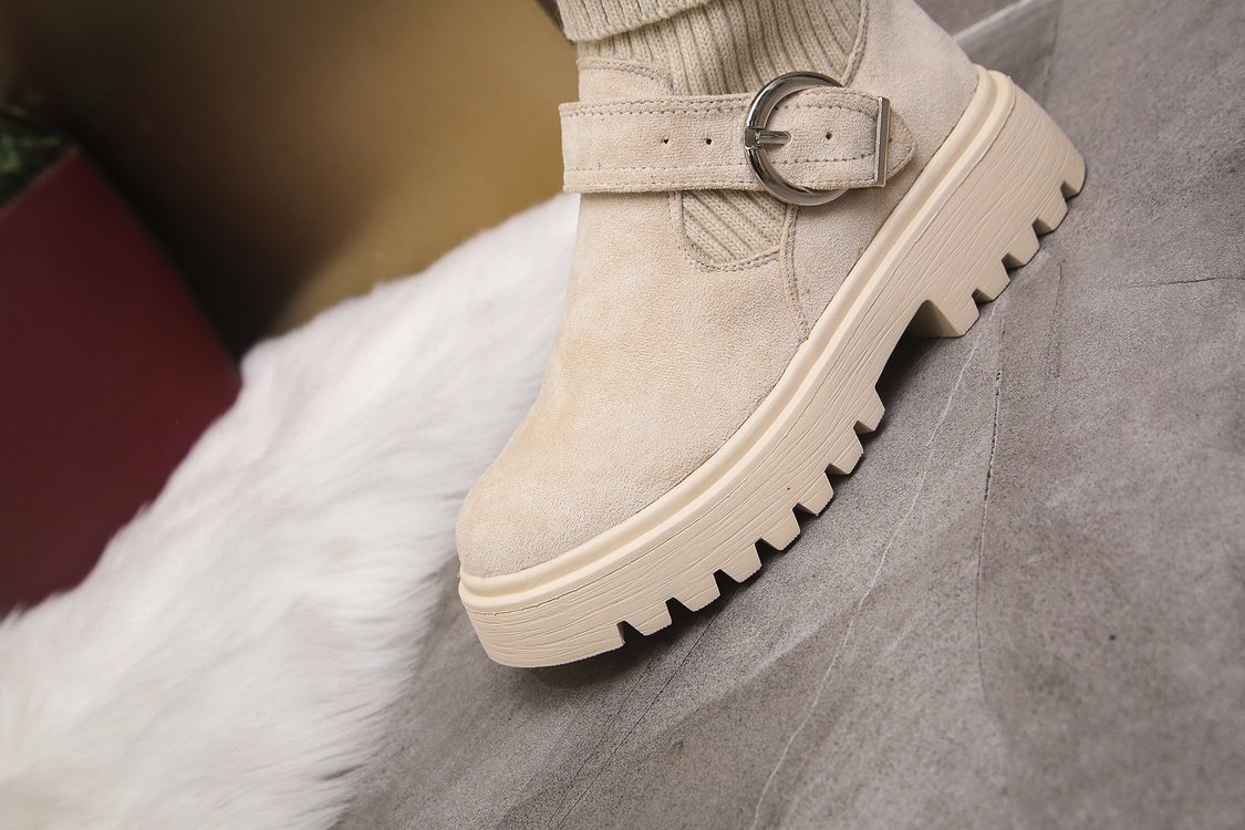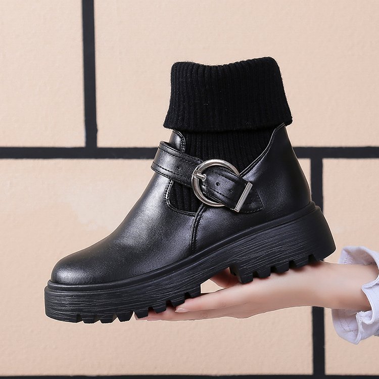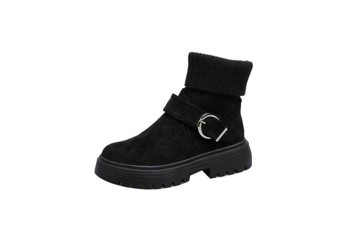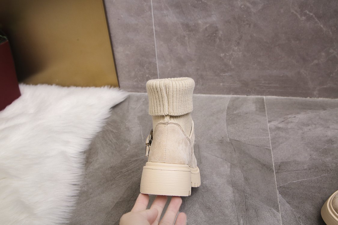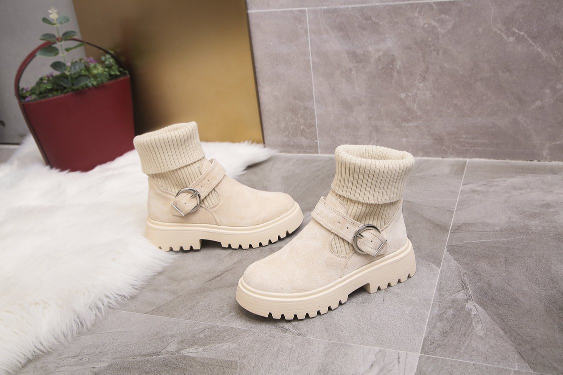 2023 가을과 겨울 새로운 스노우 부츠 두꺼운 바닥 벨트 버클 울 튜브 기모 여성의 짧은 부츠 라운드 양말 부츠 조수스토어 가기