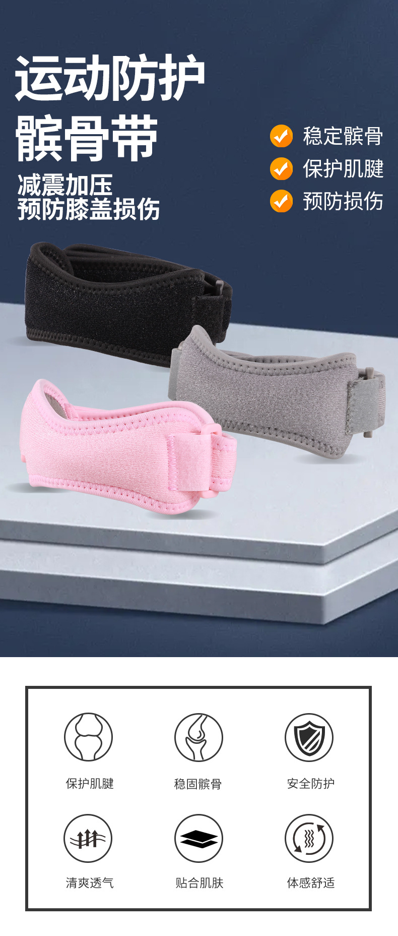 • 2001# 파란색 실리콘 싱글 슬개골 스트랩