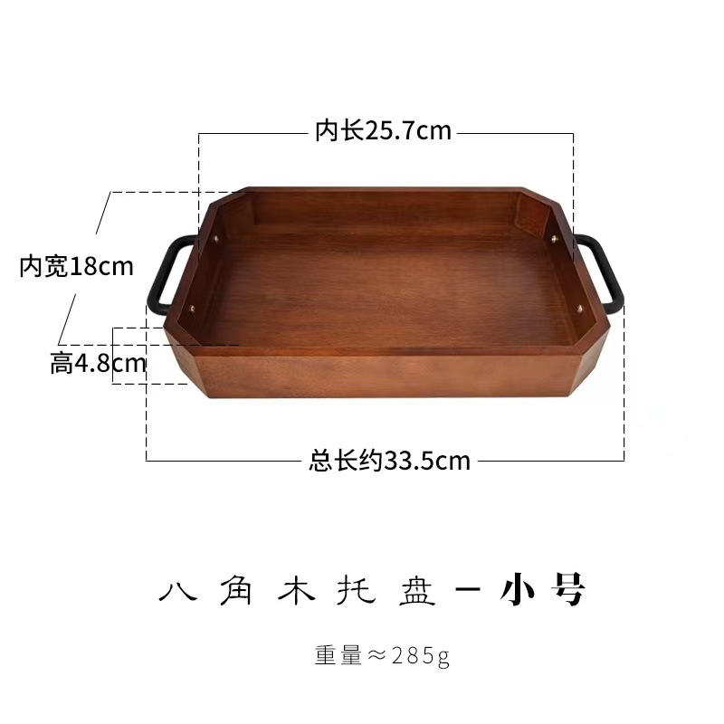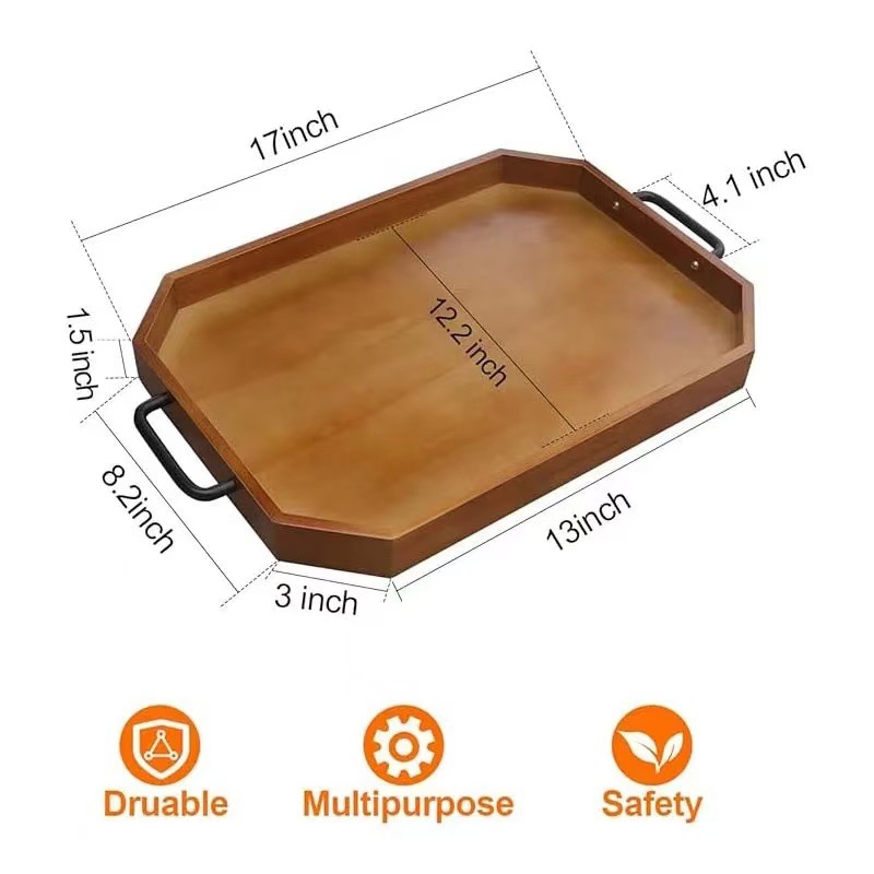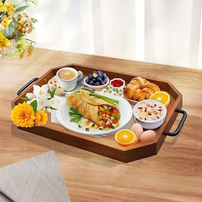 복고풍 직사각형 원목 트레이 철 손잡이 가정용 애프터눈 티 스낵 트레이 커피 트레이 빵 과일 디스플레이 트레이