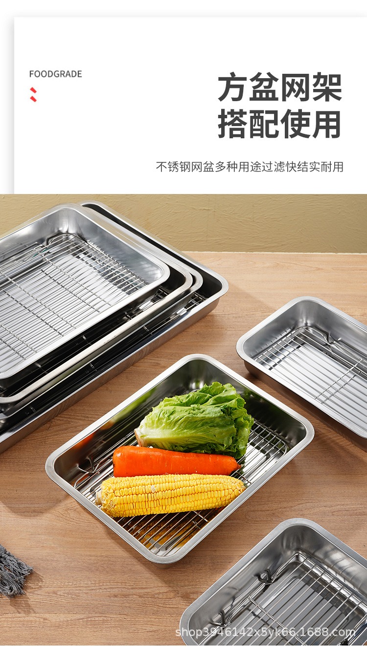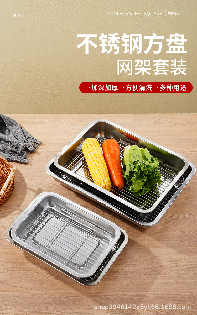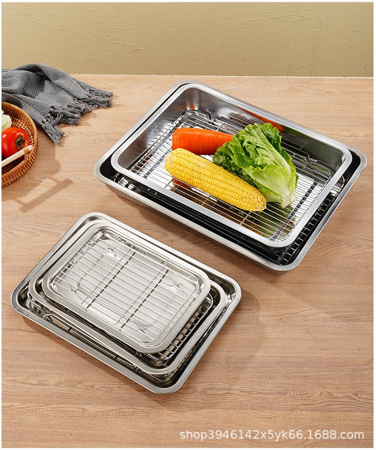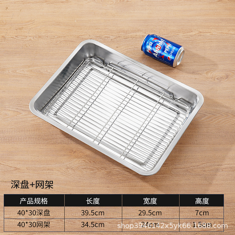 스테인레스 스틸 사각 플레이트 메쉬 상업용 오일 배수 플레이트 깊고 얕은 트레이 배수 오일 필터 베이킹 조리 식품 디스플레이 플레이트 바베큐 플레이트스토어 가기