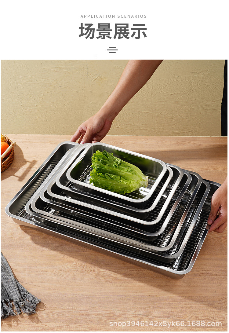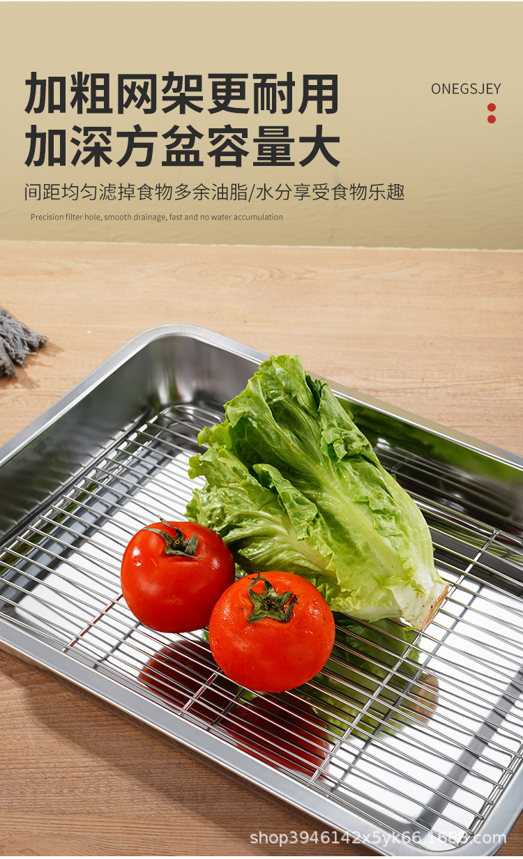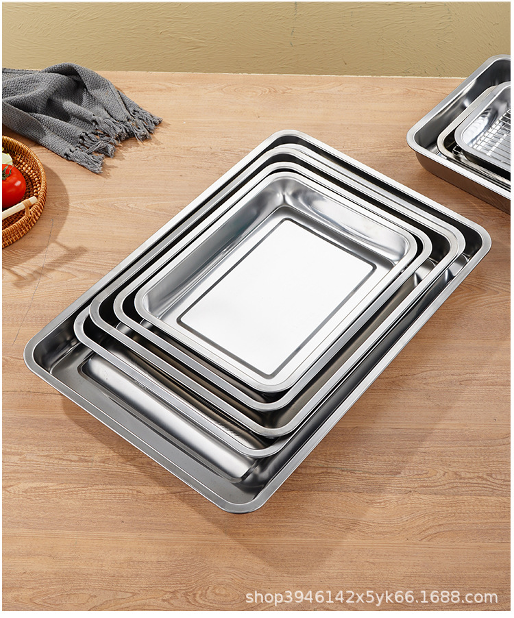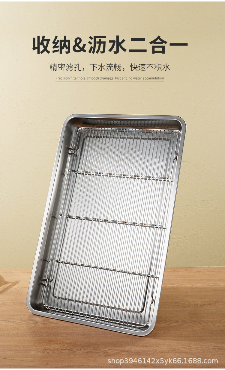 스테인레스 스틸 사각 플레이트 메쉬 상업용 오일 배수 플레이트 깊고 얕은 트레이 배수 오일 필터 베이킹 조리 식품 디스플레이 플레이트 바베큐 플레이트스토어 가기