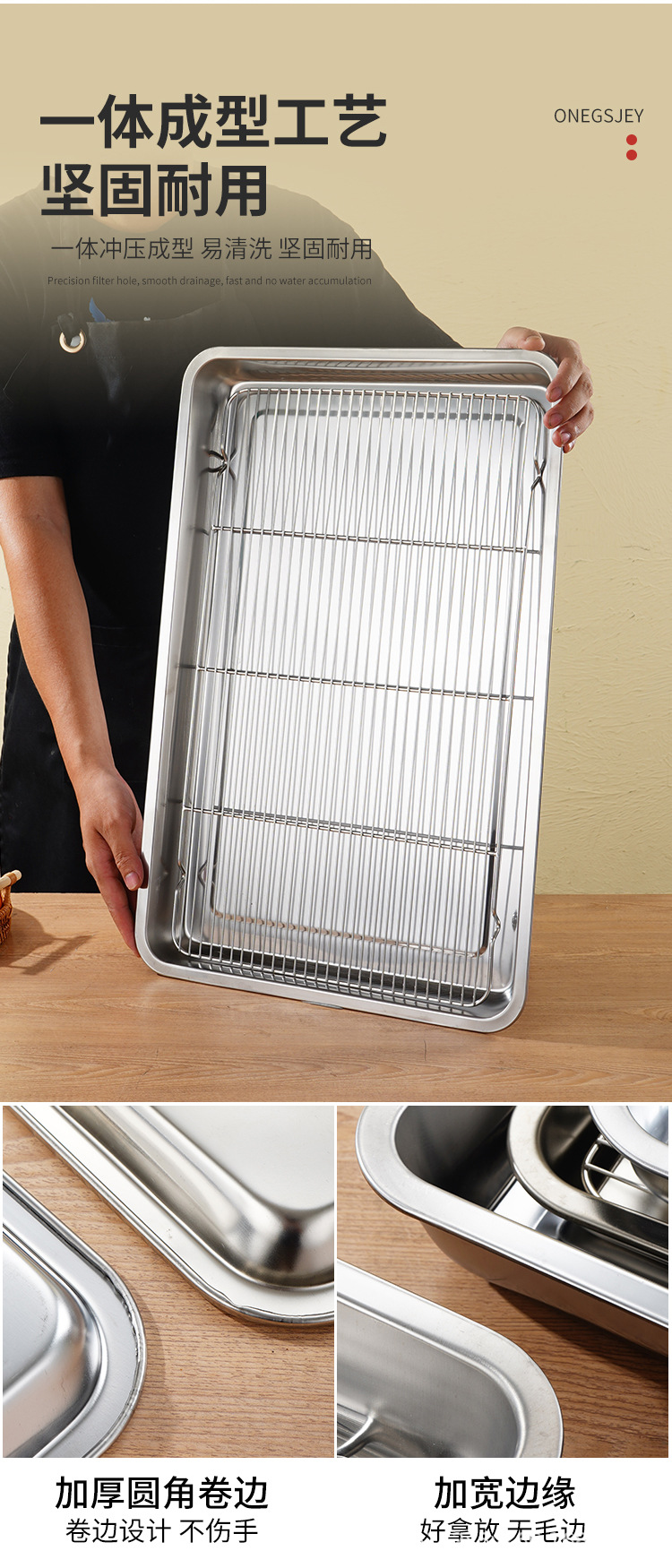 스테인레스 스틸 사각 플레이트 메쉬 상업용 오일 배수 플레이트 깊고 얕은 트레이 배수 오일 필터 베이킹 조리 식품 디스플레이 플레이트 바베큐 플레이트