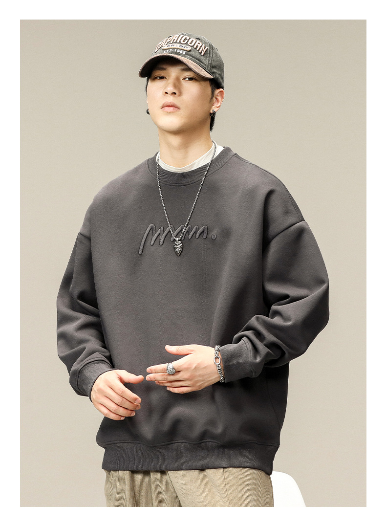 Yizhi 남성용 아메리칸 레트로 헤비급 자수 스웨트 셔츠 남성용 봄 신작 루즈 대형 트렌디 브랜드 라운드 넥 탑