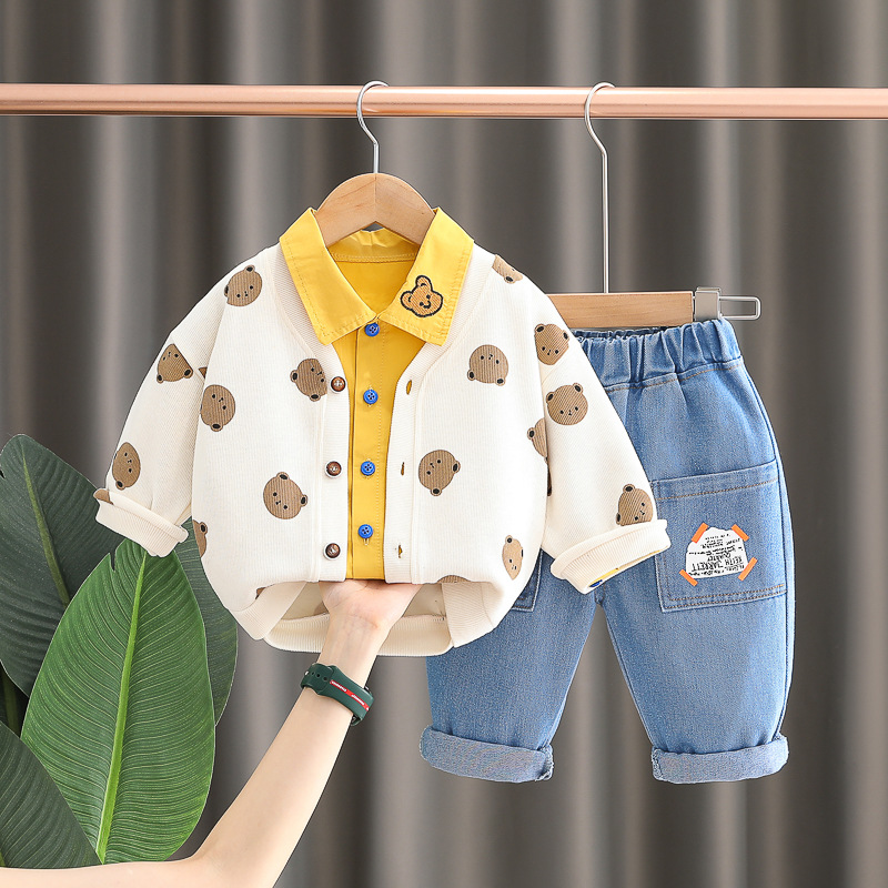 0 ~ 5 세 어린이 세트 소년 소녀 한국 레저 외국 스타일 카디건 코트 셔츠 청바지 쓰리 피스 세트스토어 가기