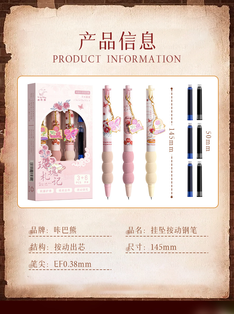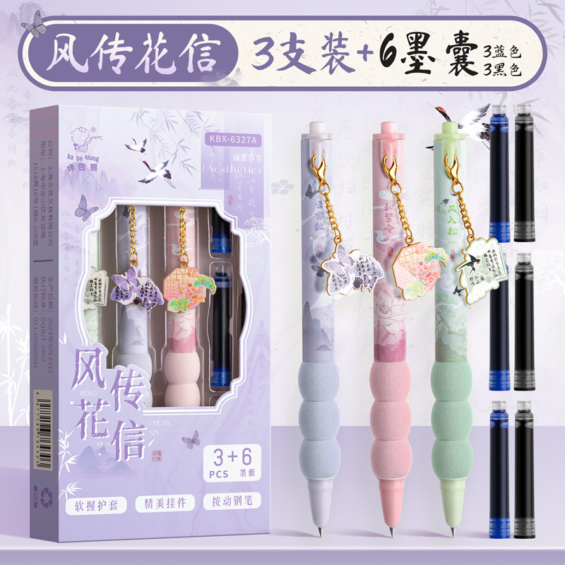 Kaba Bear 초등학생 프레스 펜던트 만년필 세트 3 학년 어린이 서예 연습 만년필 EF0.38 범용 잉크 백스토어 가기