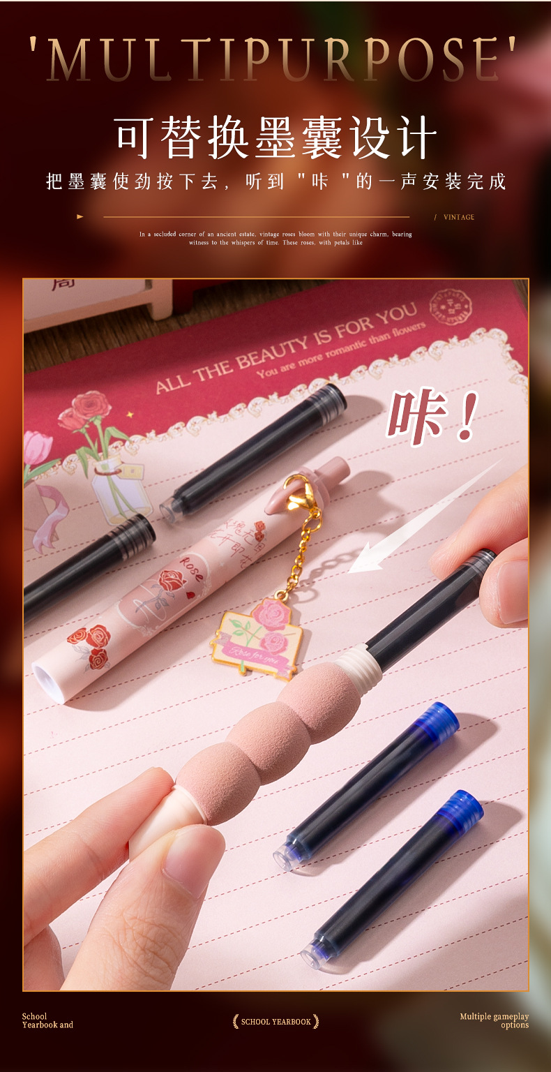 Kaba Bear 초등학생 프레스 펜던트 만년필 세트 3 학년 어린이 서예 연습 만년필 EF0.38 범용 잉크 백