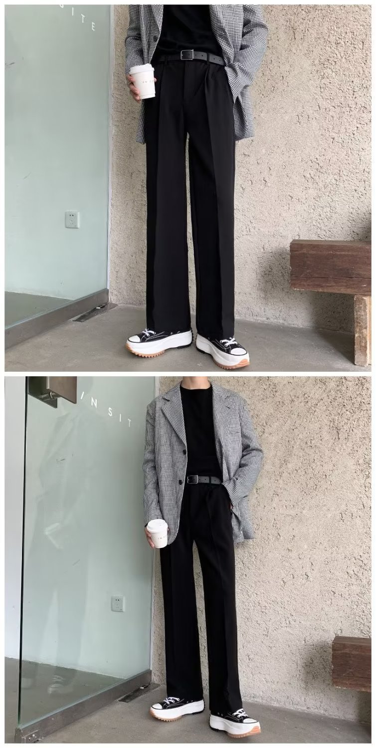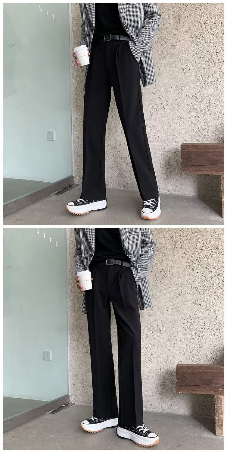 여름 얇은 바지 남성용 스트레이트 배럴 느슨한 아이스 실크 드롭 올매치 블랙 세트 팬츠 와이드 레그 캐주얼 팬츠스토어 가기