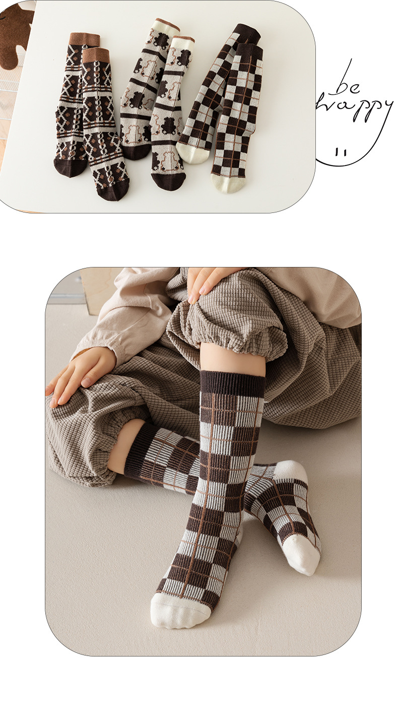 어린이 양말 조수 양말 가을과 겨울 줄무늬 격자 무늬 면화 양말 만화 소년과 소녀 아기 스타킹 세대스토어 가기