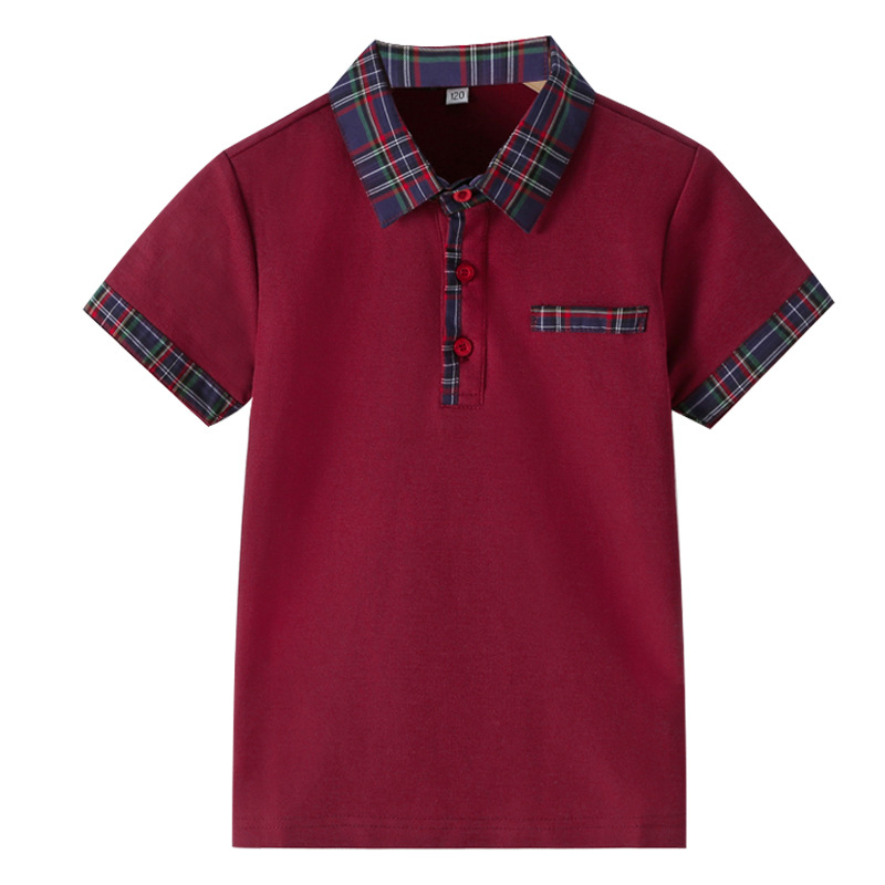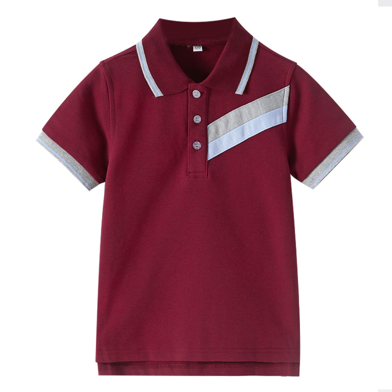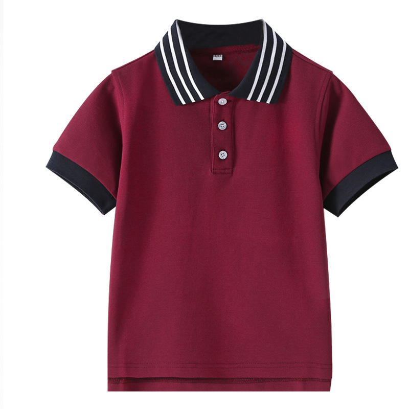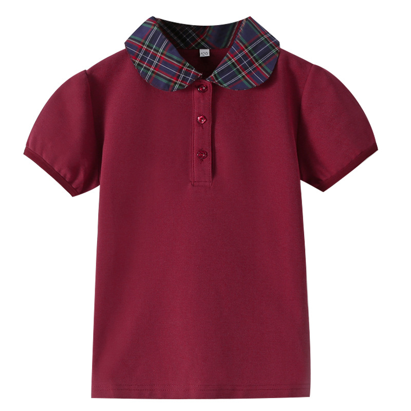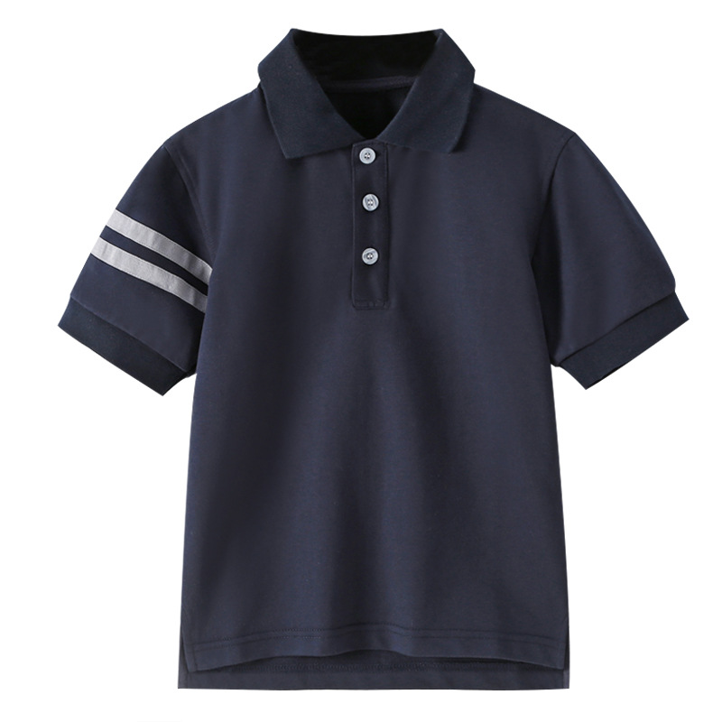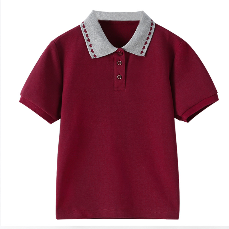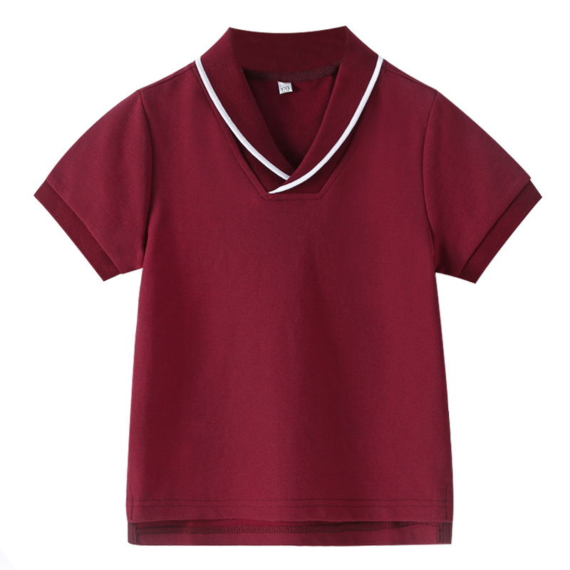 초등 및 중등 학생을위한 소년 소녀 반팔 폴로 셔츠 영국 대학 스타일 교복 반팔 단색 중대형 어린이 옷깃 티셔츠