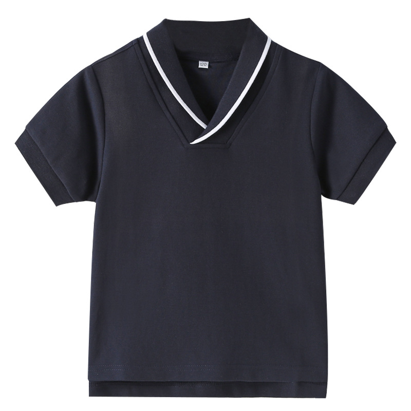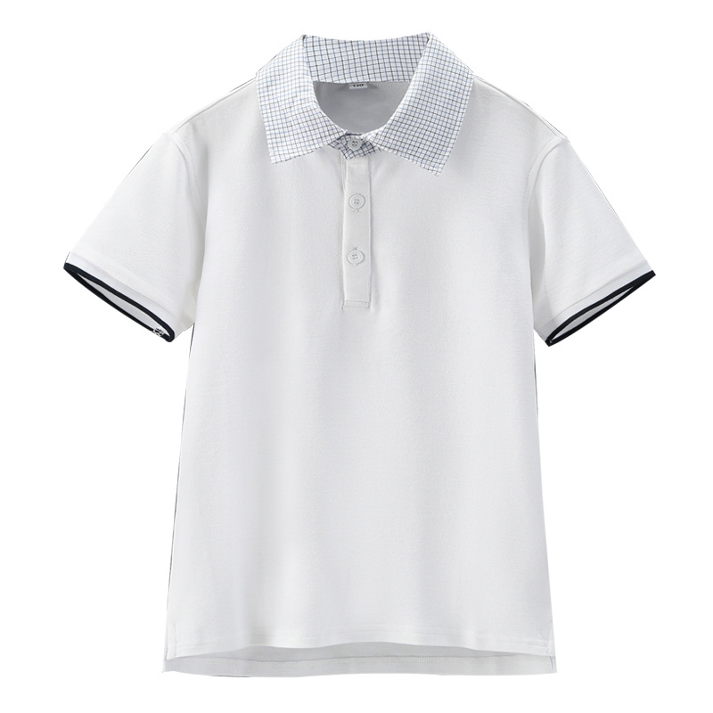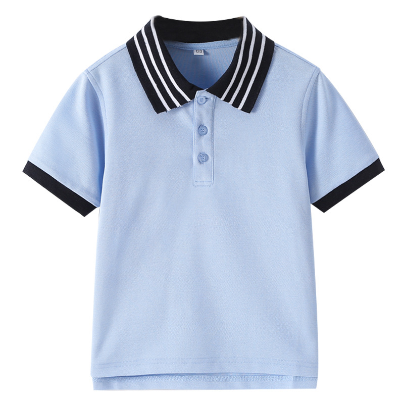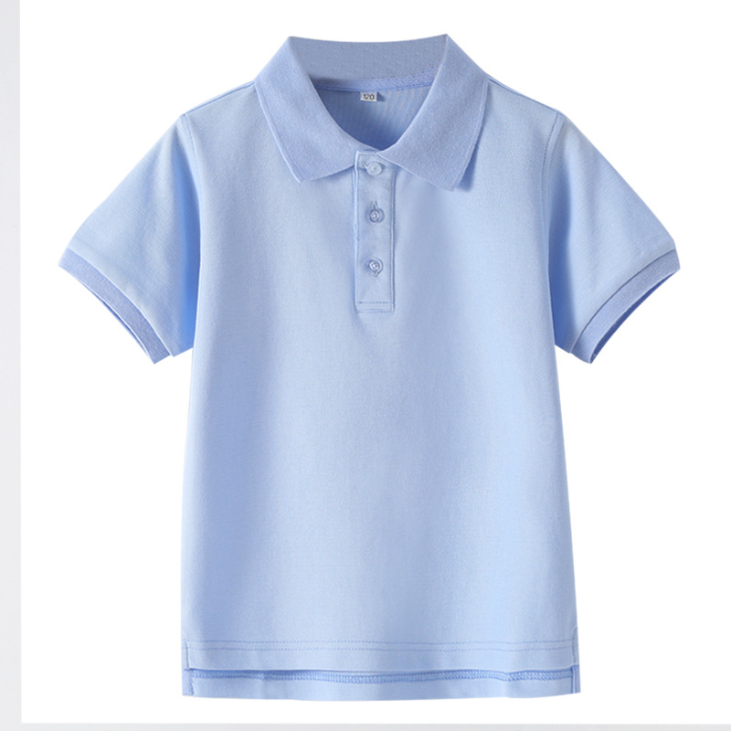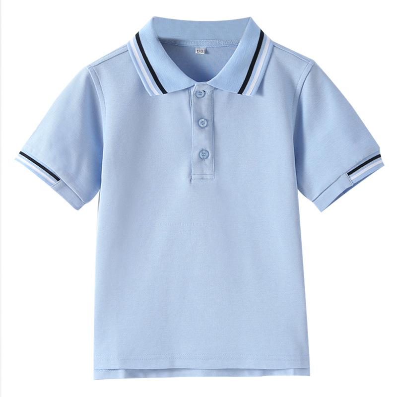 초등 및 중등 학생을위한 소년 소녀 반팔 폴로 셔츠 영국 대학 스타일 교복 반팔 단색 중대형 어린이 옷깃 티셔츠스토어 가기