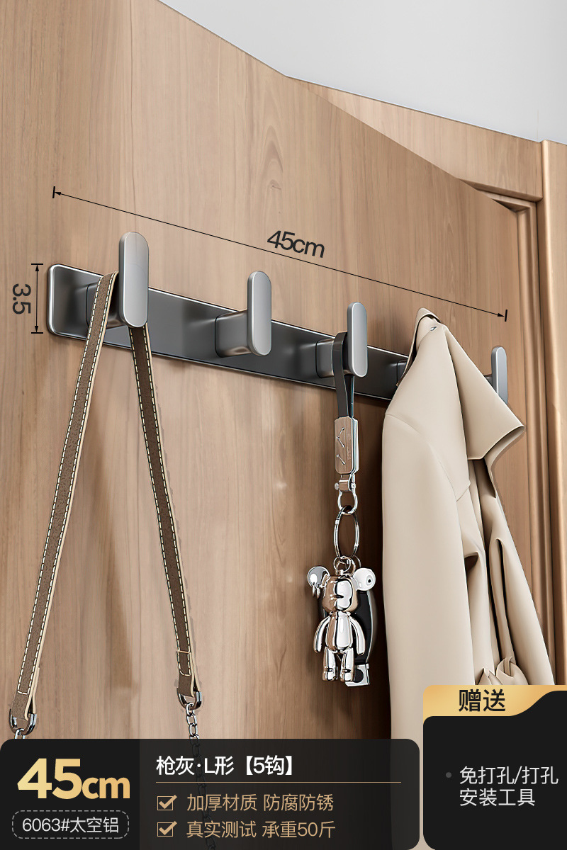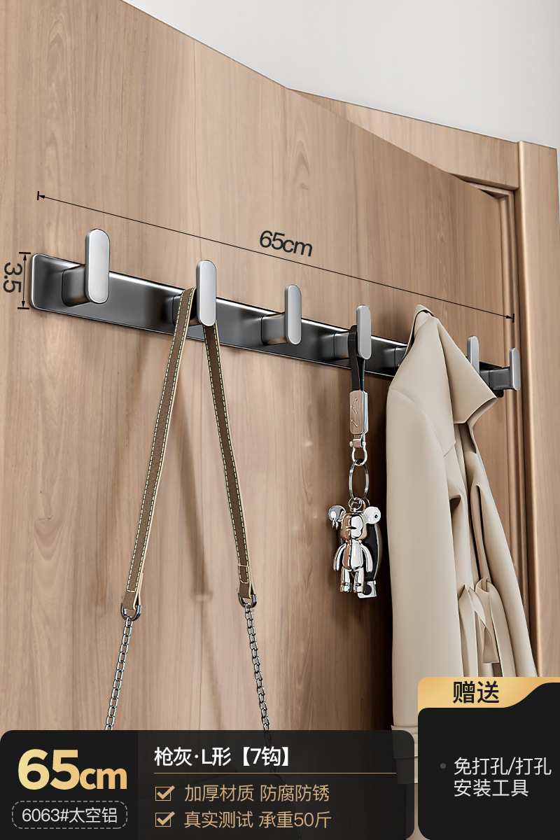 공간 알루미늄 옷 후크 벽 피팅 행 후크 욕실 화장실 천공되지 않은 문 옷 후크 머리카락의 세대