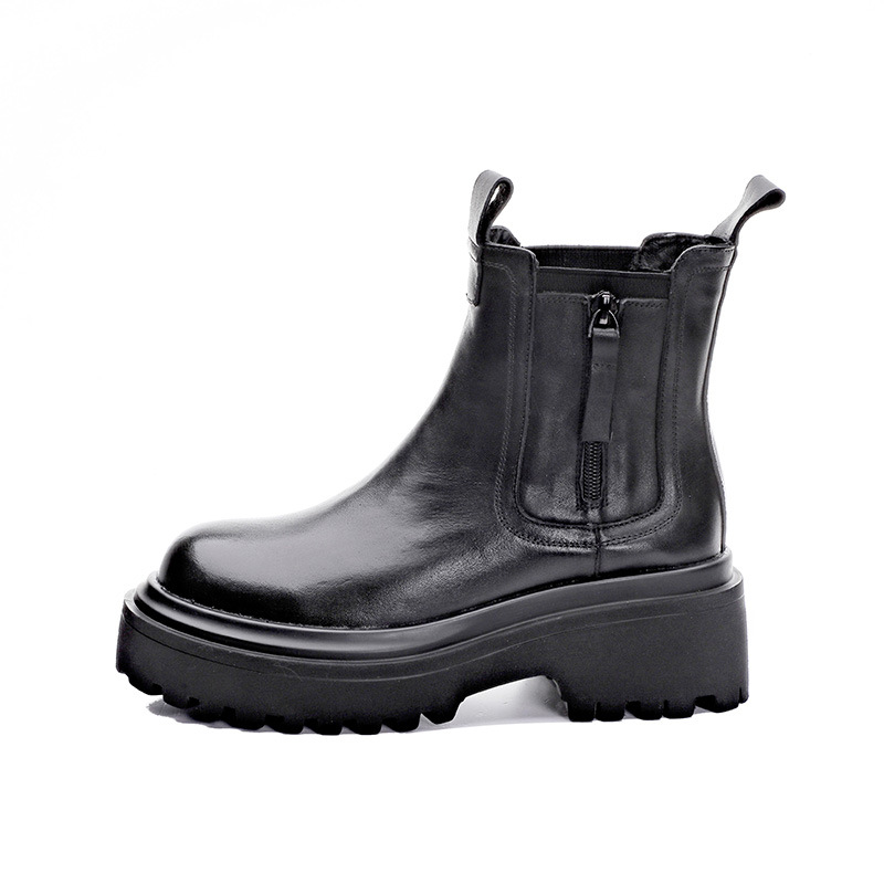 2023 새로운 퍼스트 레이어 소가죽 마틴 부츠 여성용 모나 브리티시 스타일 중간 길이 두꺼운 밑창 첼시 부츠 스모크 부츠스토어 가기