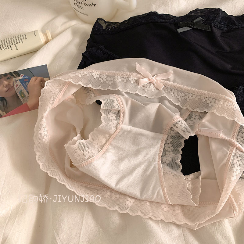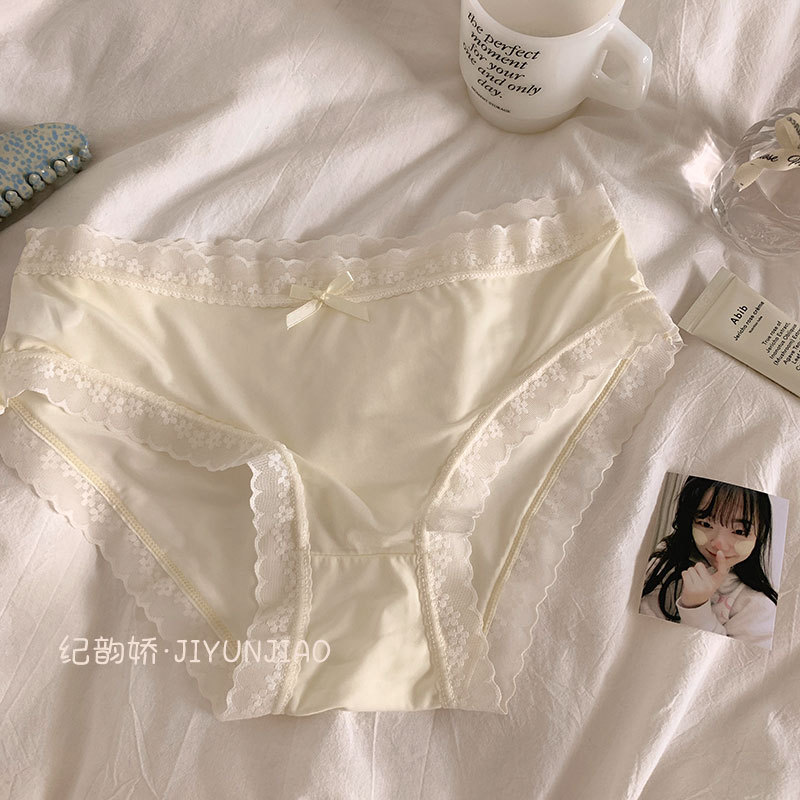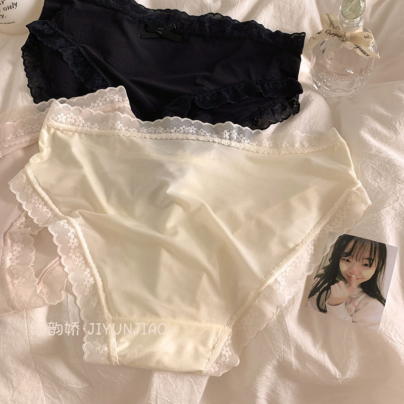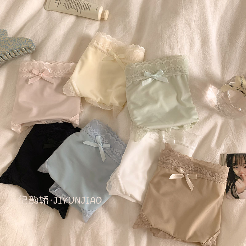 일본식 레이스 에지 아이스 실크 속옷 여성용 추적없는 중간 허리 피부 친화적 인 섹시한 여름 경량 심플 속옷 여성용스토어 가기