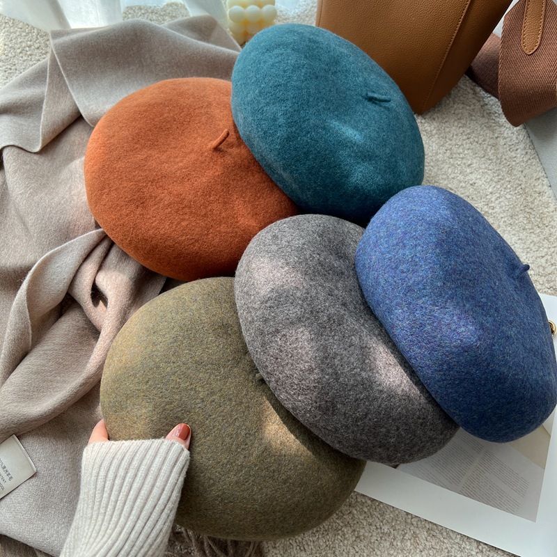 하이 퀄리티 호주 퓨어 울 베레모 여성의 가을과 겨울 모든 경기 한일 화가의 모자 복고풍 큰 머리 배꼽스토어 가기