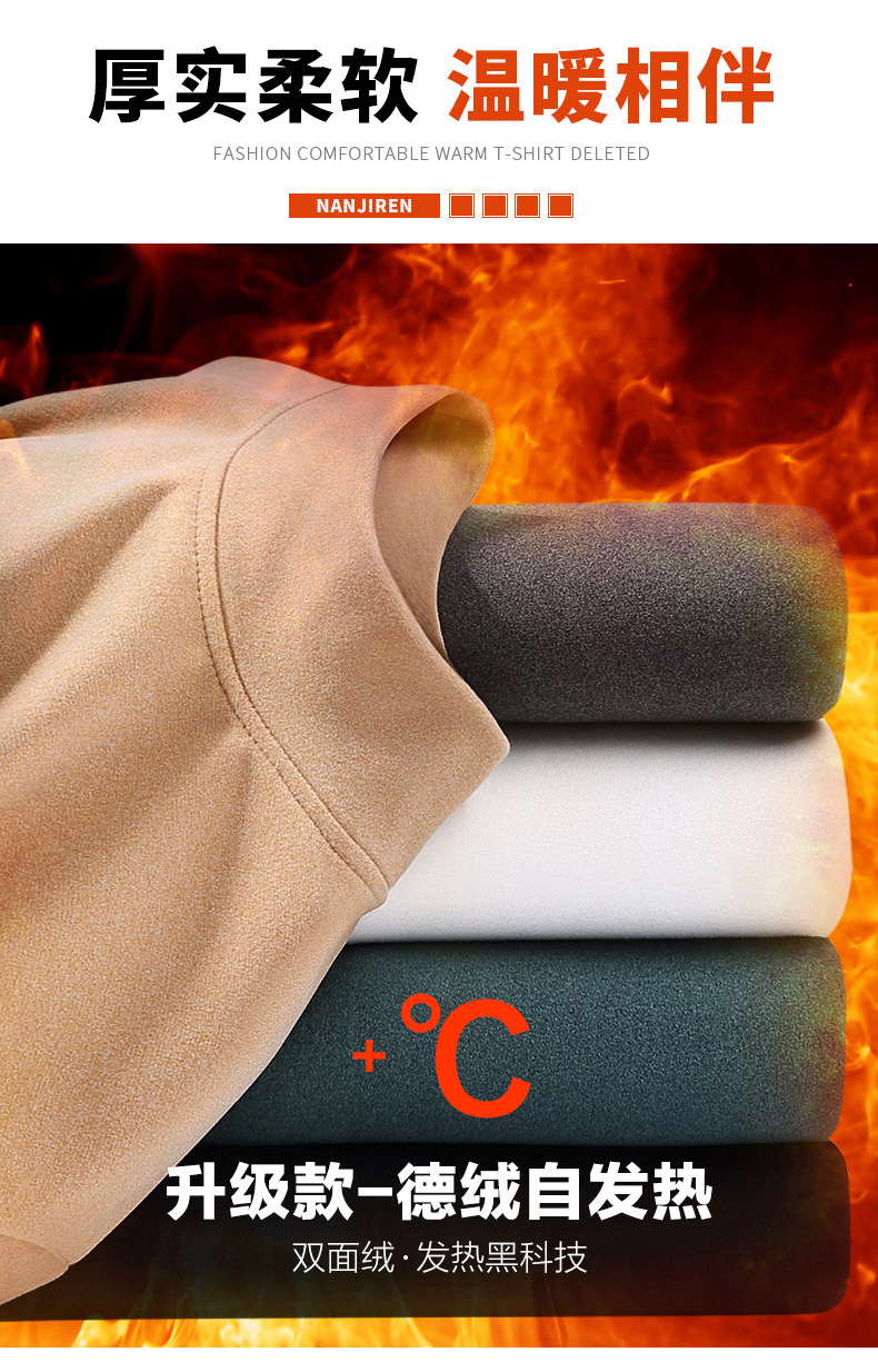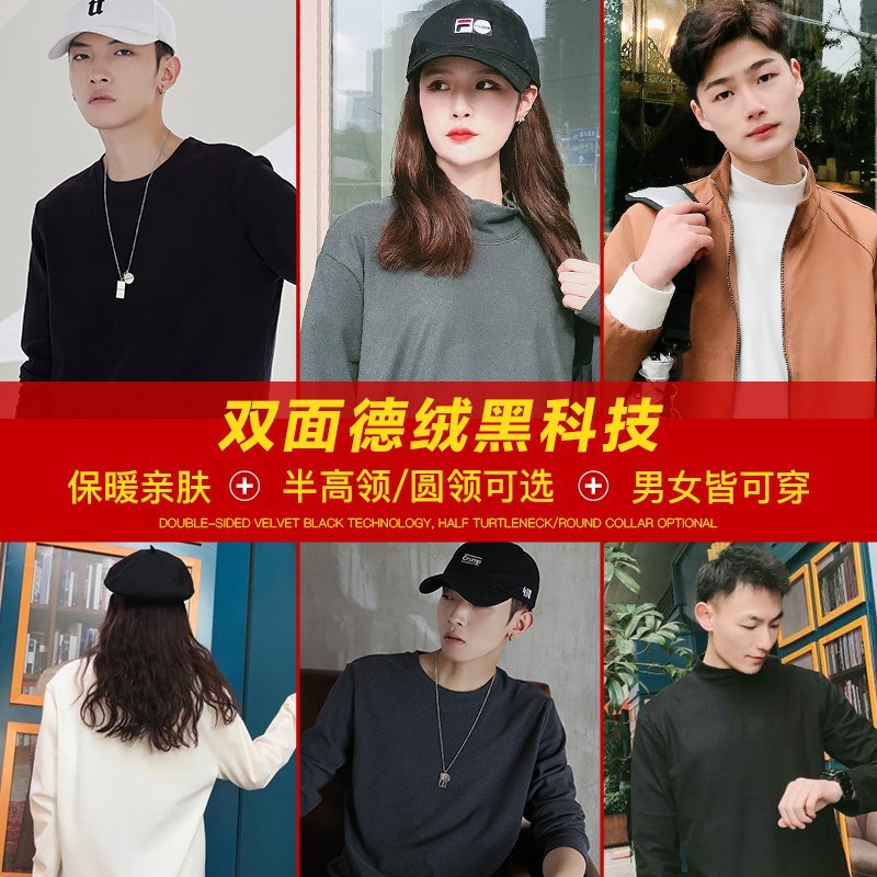 긴팔 바닥 셔츠 가을과 겨울 새로운 벨벳 티셔츠 남성용 긴팔 겨울 단색 세미 하이 칼라 캐주얼 느슨한 바닥 셔츠스토어 가기