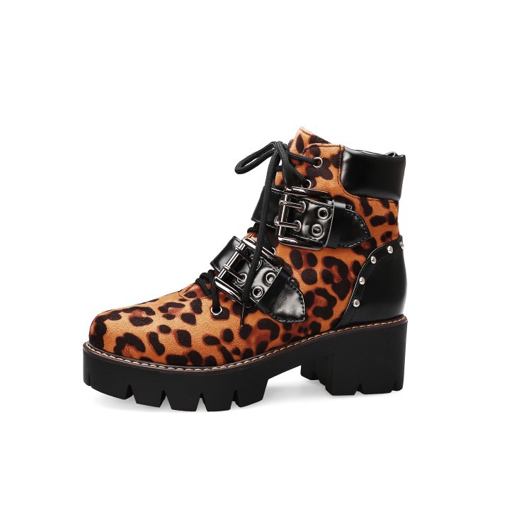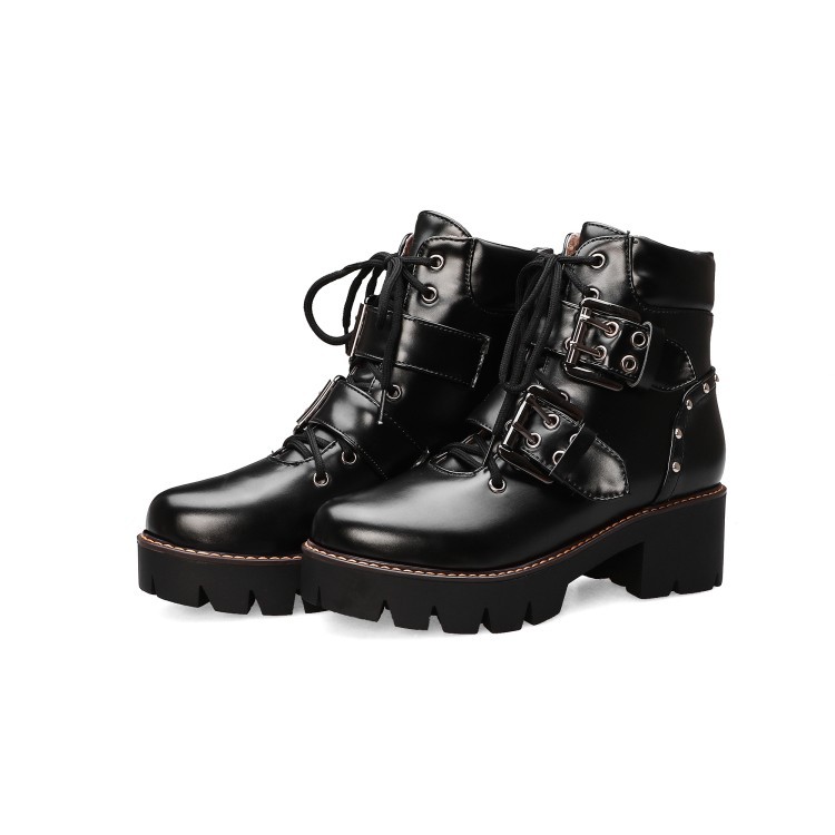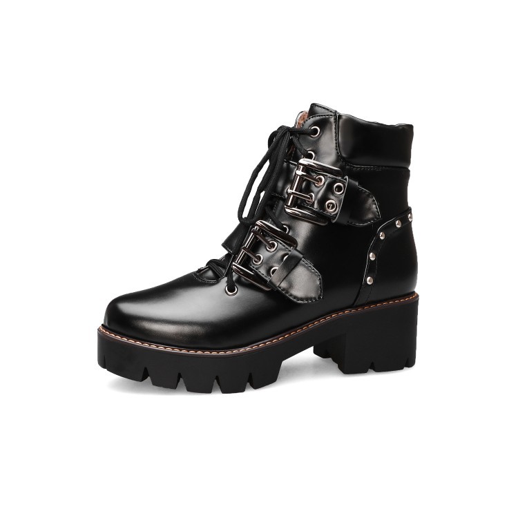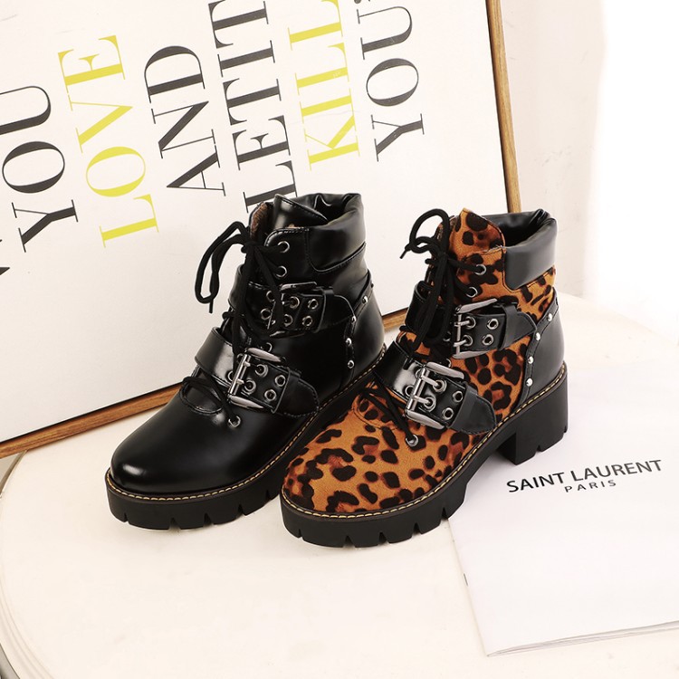 블랙 마틴 부츠 여성의 가을과 겨울 새로운 영국 스타일 스퀘어 토 가죽 부츠 하이힐 모든 일치 두꺼운 바닥 체인 오토바이 짧은 부츠