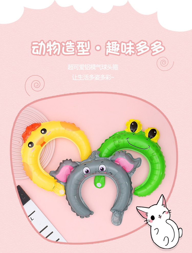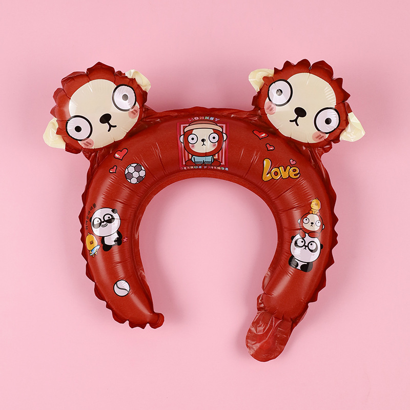 그물 빨간 풍선 머리띠 만화 동물 머리띠 어린이 머리 장식 알루미늄 필름 풍선 청소 야드 푸시 작은 선물 도매