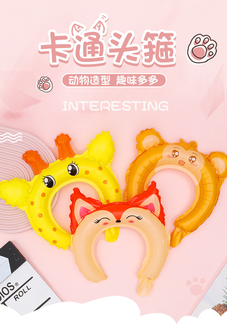 그물 빨간 풍선 머리띠 만화 동물 머리띠 어린이 머리 장식 알루미늄 필름 풍선 청소 야드 푸시 작은 선물 도매스토어 가기