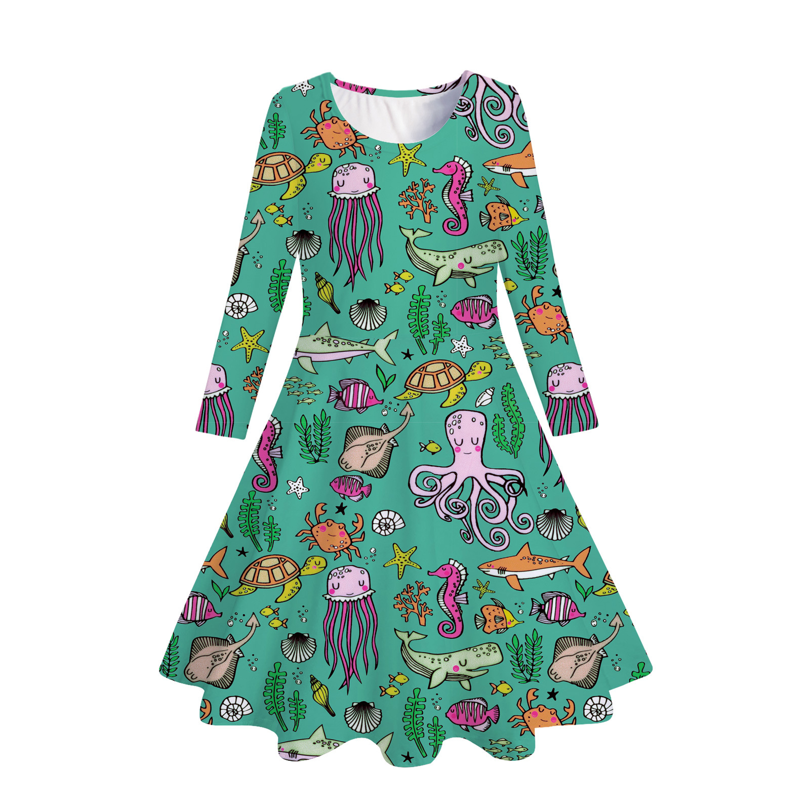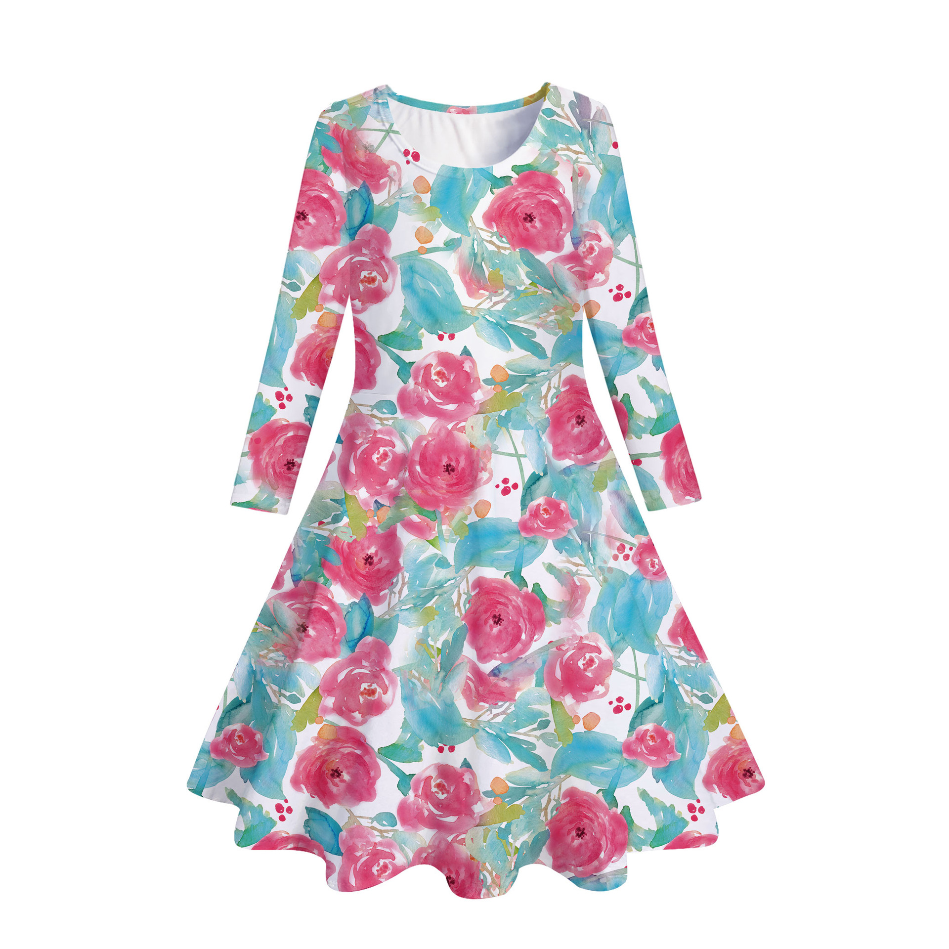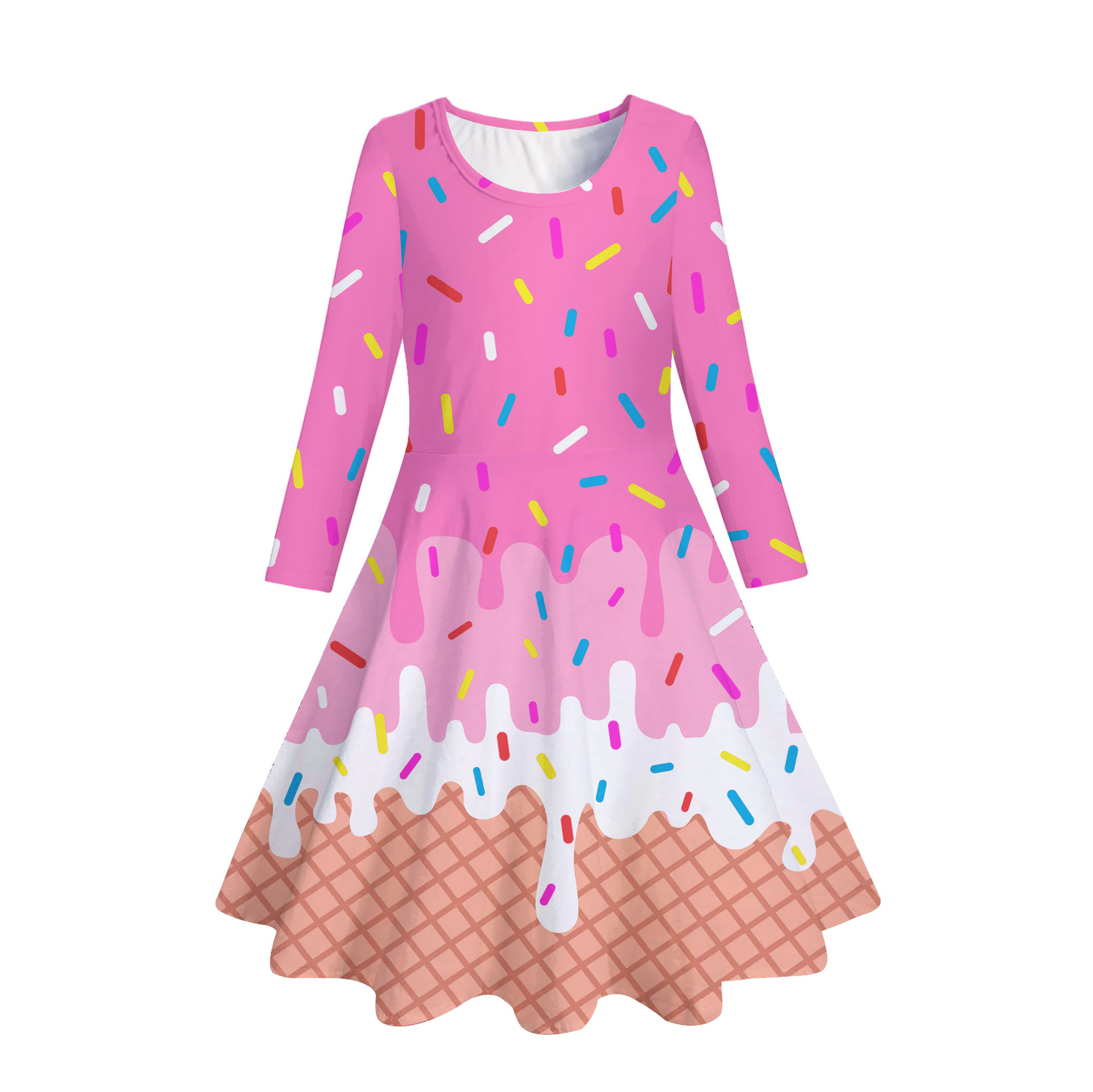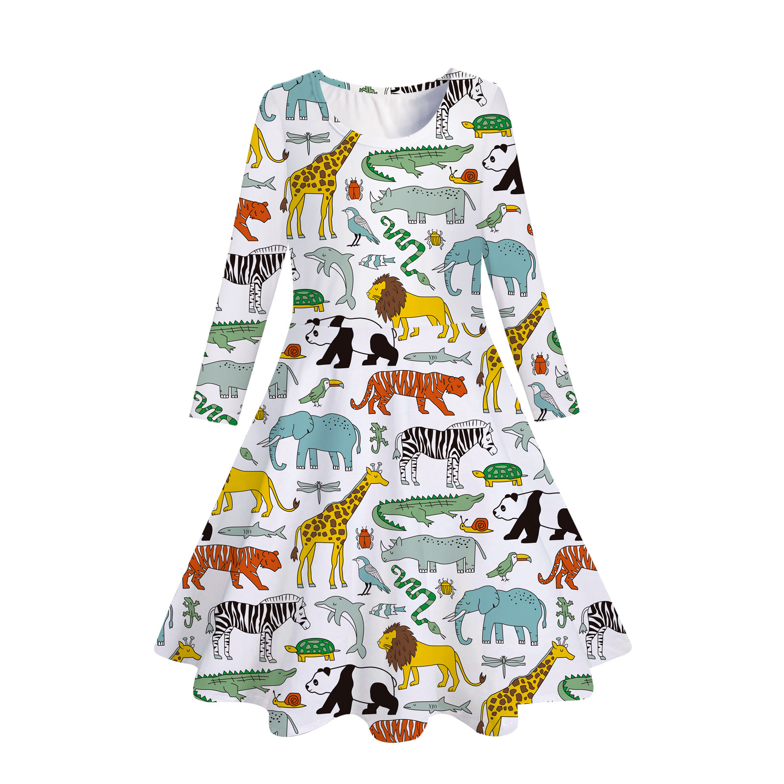 공장 직접 도매 아동복 봄과 가을 새로운 유럽과 미국 스타일의 소녀 원피스 긴 소매 어린이 치마 원피스 인쇄스토어 가기