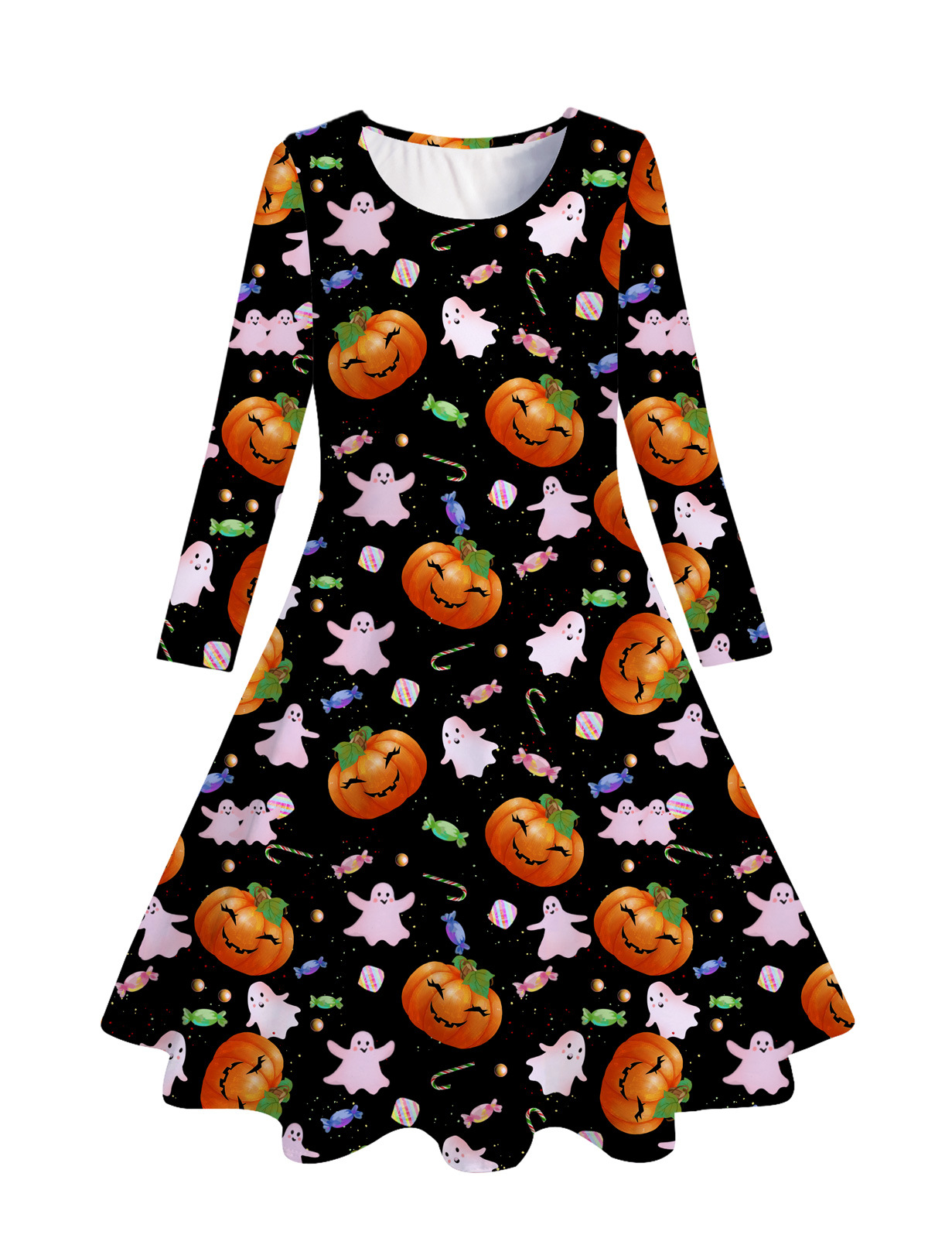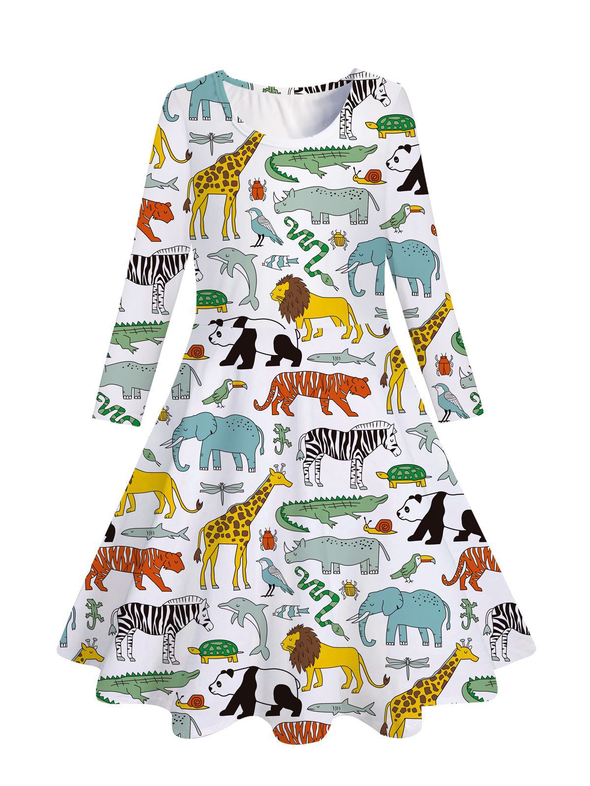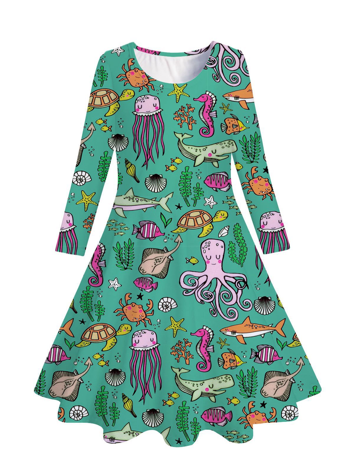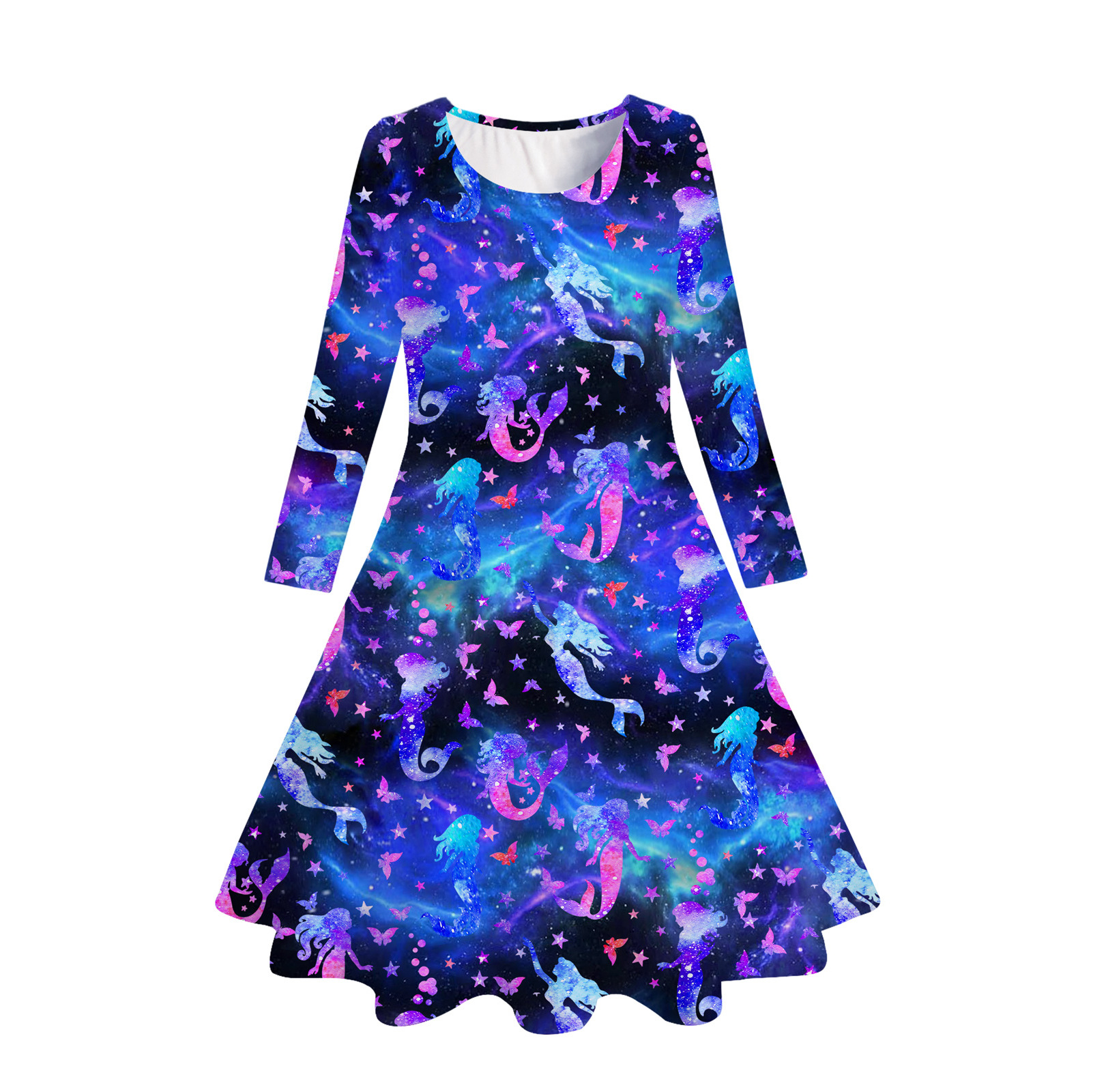공장 직접 도매 아동복 봄과 가을 새로운 유럽과 미국 스타일의 소녀 원피스 긴 소매 어린이 치마 원피스 인쇄스토어 가기