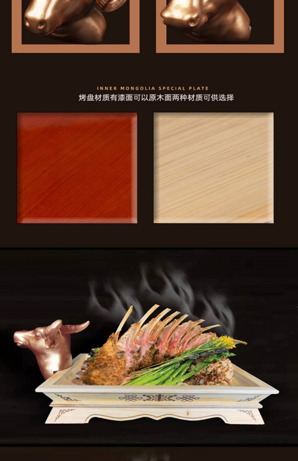 ◌ 몽골 특산 식기 구이 양고기 접시 손잡이 고기 접시 소고기 양갈비 양다리 트레이 몽골식 레스토랑 원목스토어 가기