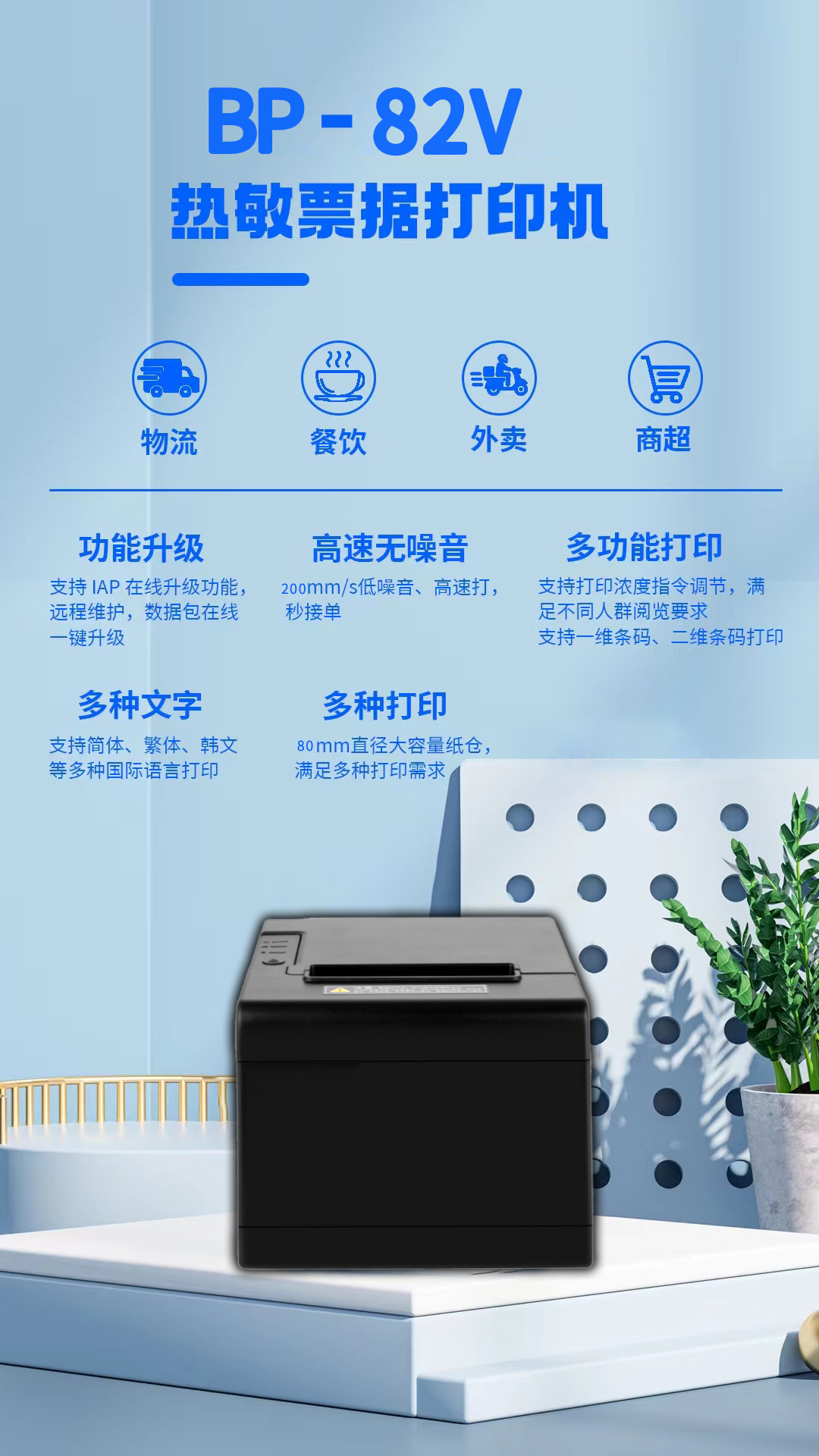 대외 무역 도매 영수증 프린터 열전사 영수증 80MM 계산대 프린터 주방 상점 식당 자동 종이 절단스토어 가기