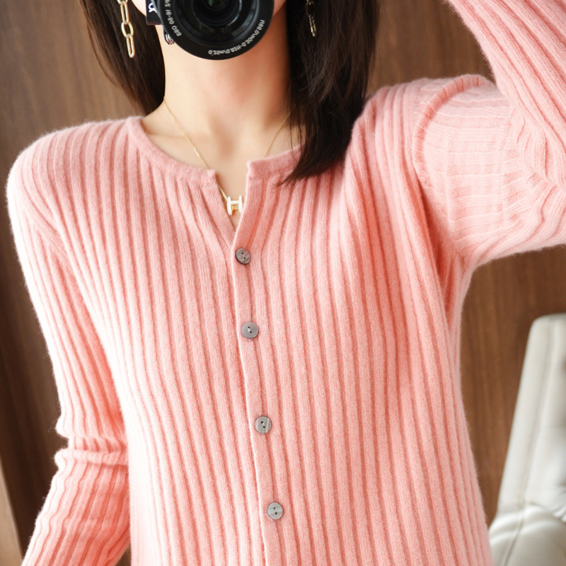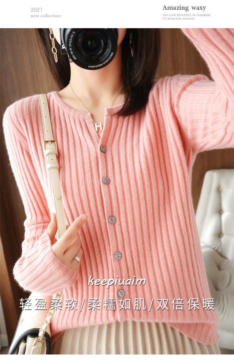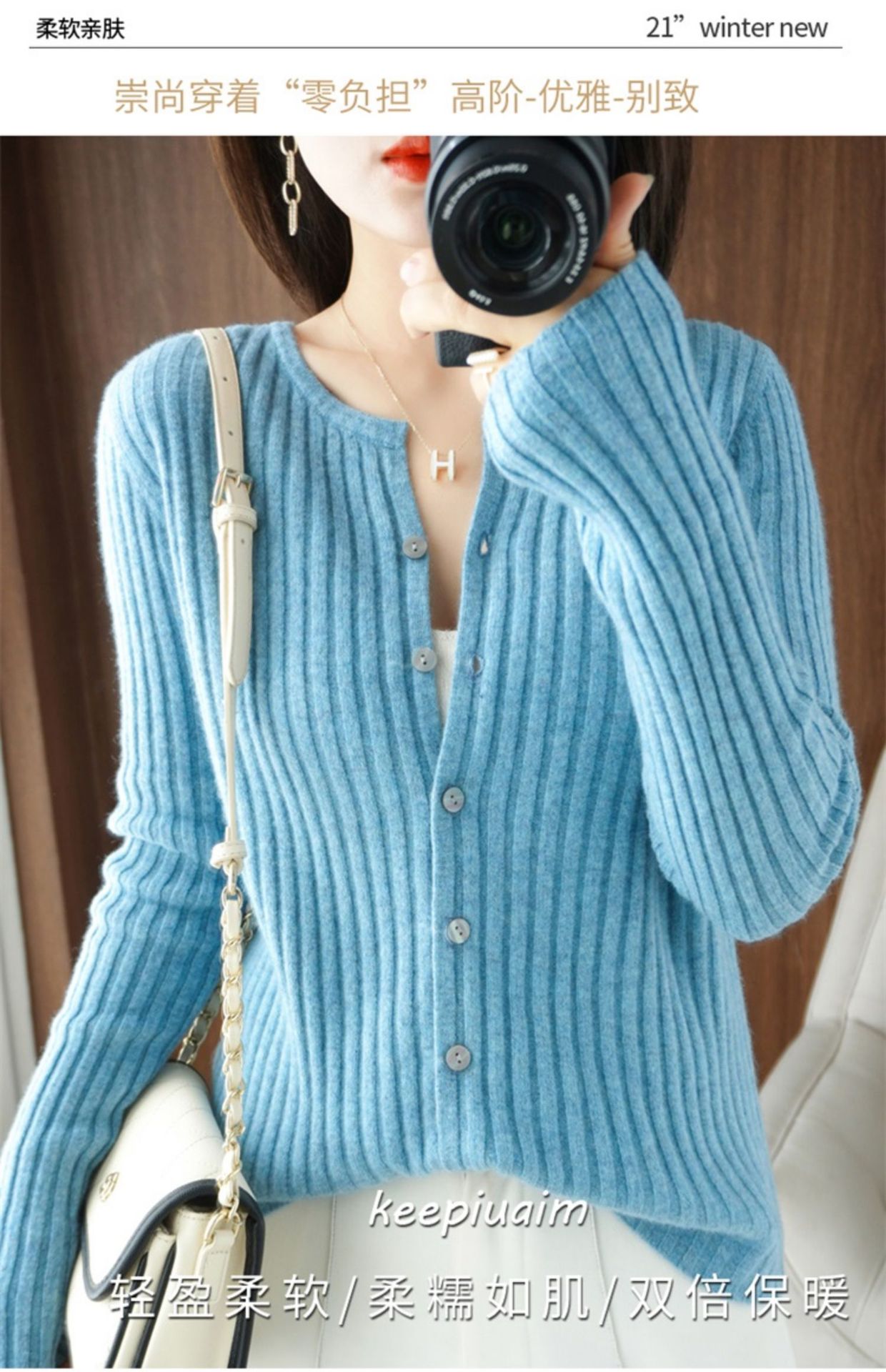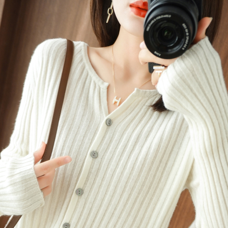 부드러운 왁스 울 니트 스웨터 카디건 여성용 봄과 가을 새로운 얇은 긴팔 슬림핏 V-넥 재킷 내부 탑스토어 가기