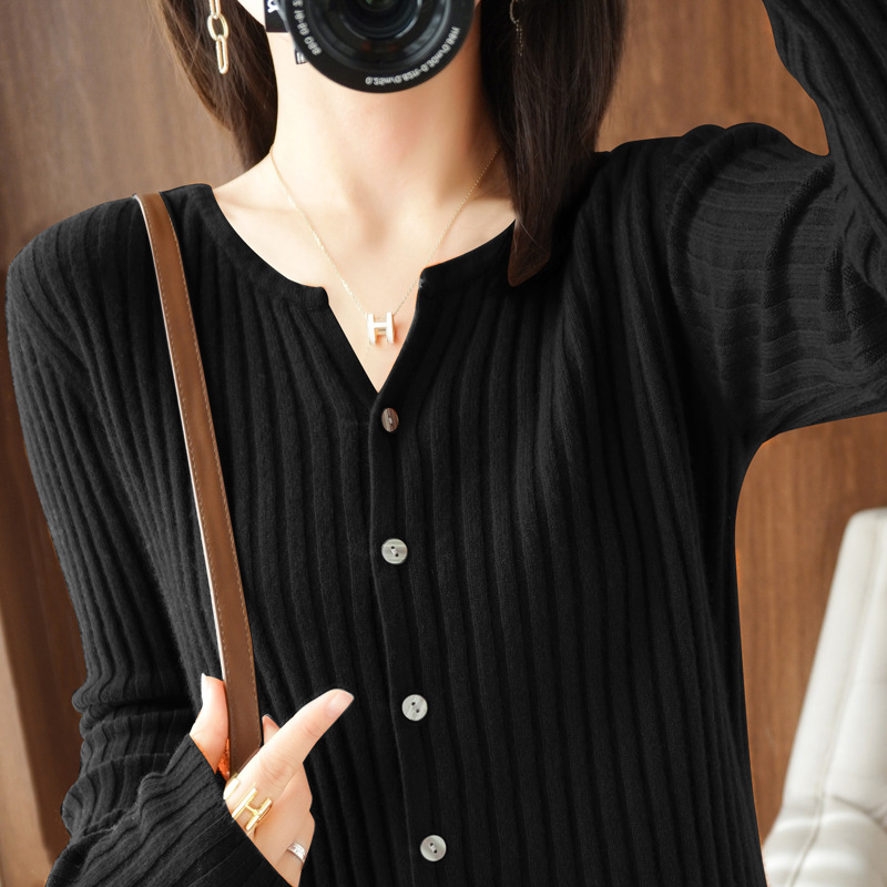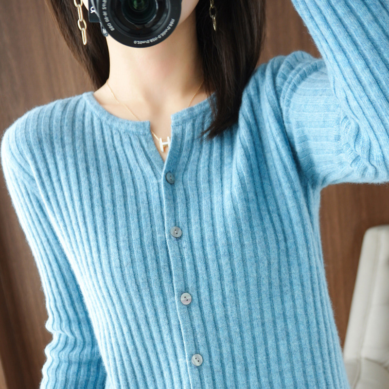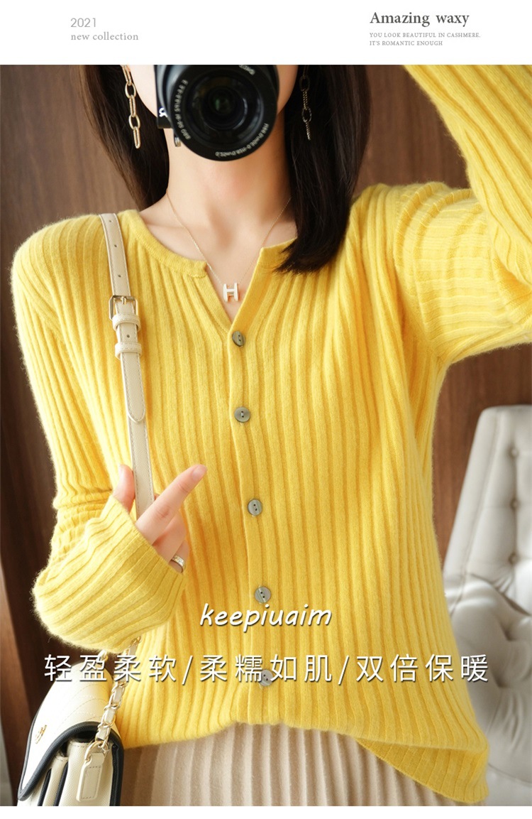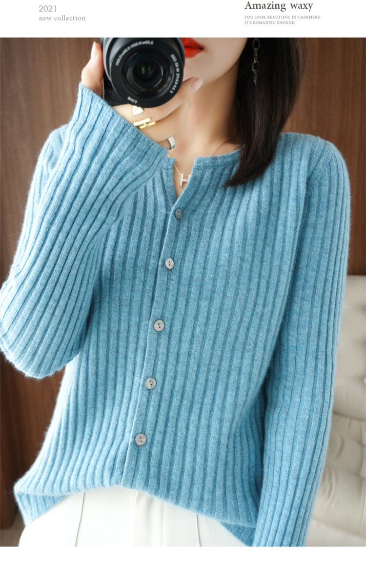 부드러운 왁스 울 니트 스웨터 카디건 여성용 봄과 가을 새로운 얇은 긴팔 슬림핏 V-넥 재킷 내부 탑스토어 가기