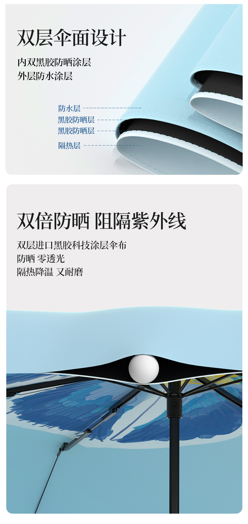 유휴 코끼리 검은 고무 차양 이중 선 스크린 증가 우산 표면 UV 보호 UPF50 + 비와 햇빛 이중 목적 여성 태양 우산
