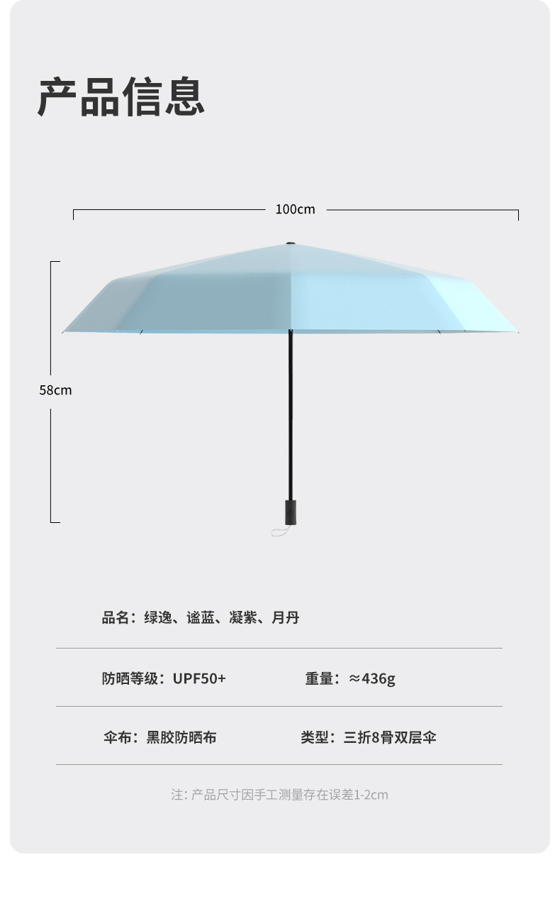 유휴 코끼리 검은 고무 차양 이중 선 스크린 증가 우산 표면 UV 보호 UPF50 + 비와 햇빛 이중 목적 여성 태양 우산스토어 가기